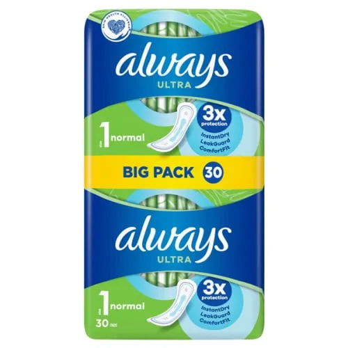 Прокладки Always Ultra Normal — это надежное средство для женской гигиены, обеспечивающее максимальный комфорт и защиту в дни менструации. В упаковке содержится 30 прокладок, что делает их идеальным выбором для длительного использования.