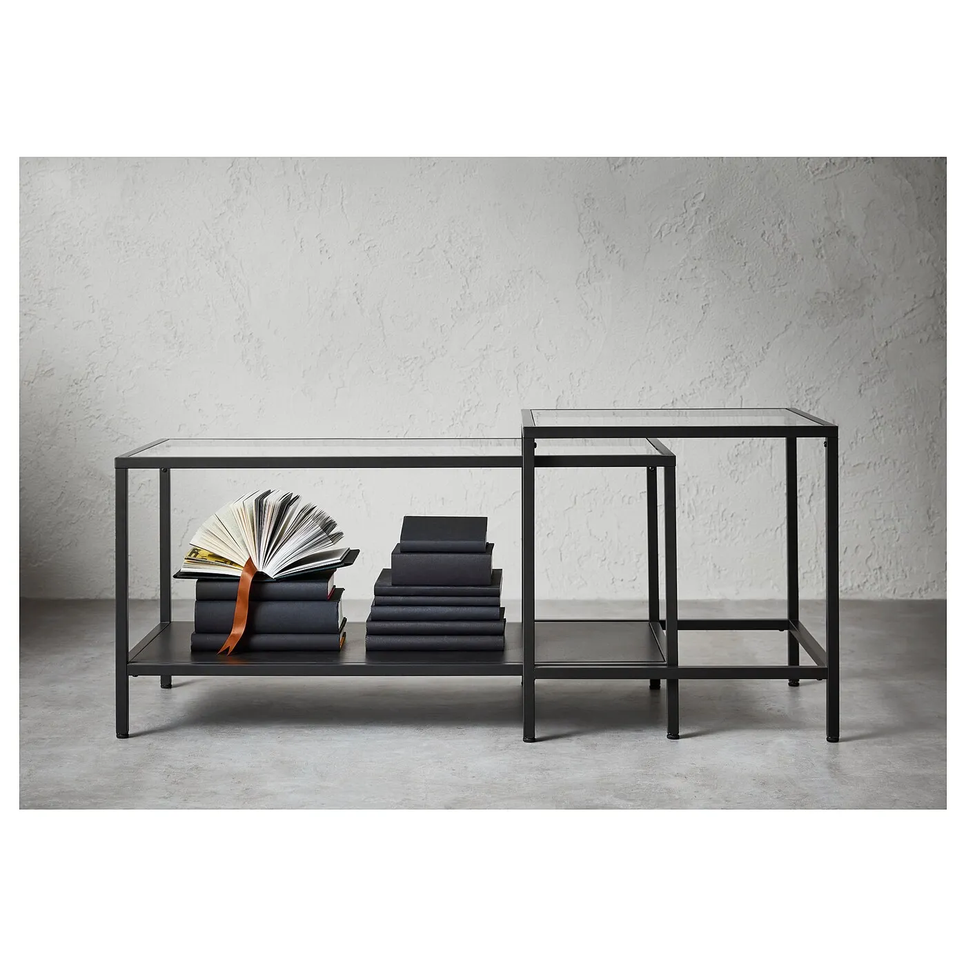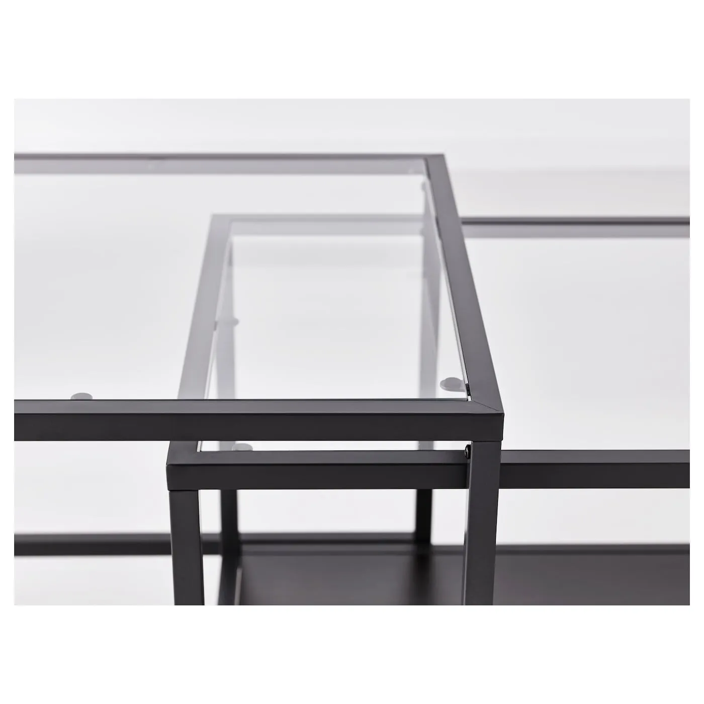 Простой и лаконичный дизайн столиков VITTSJÖ создает легкое и воздушное впечатление. Вы можете использовать их по отдельности, вместе или задвинуть один под другой.