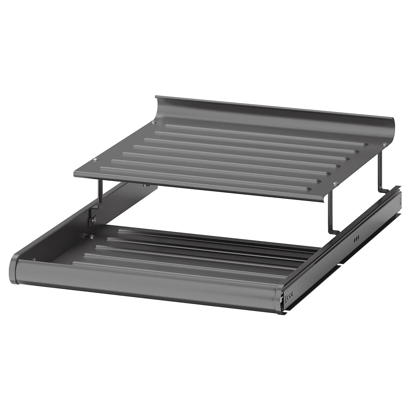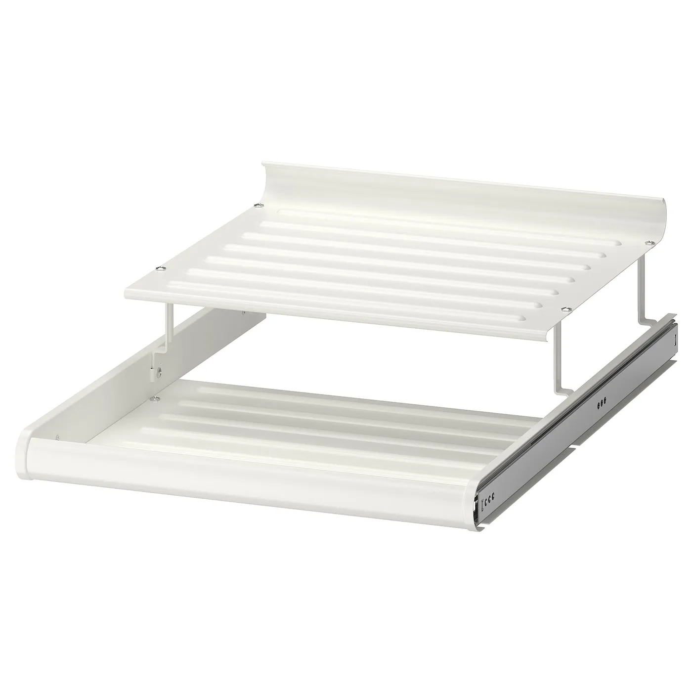 Больше не нужно лезть в глубь гардероба в поисках обуви — эта полка выезжает вам навстречу. Металлическая конструкция подходит как для стильных туфель, так и для походной обуви.