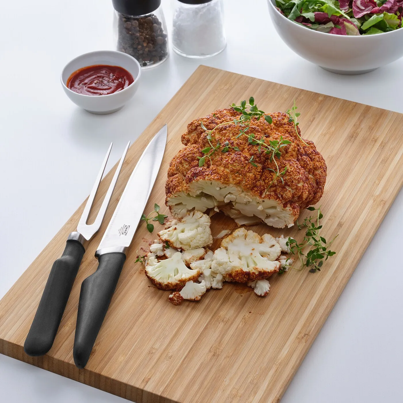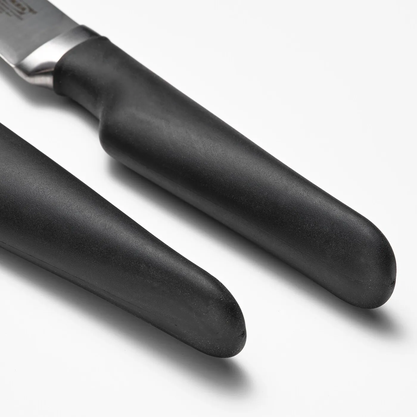 Разделывать жаркое с этими инструментами – просто удовольствие. Вилка надёжно удерживает мясо, а благодаря узкому остроконечному лезвию ножа вы сможете нарезать ломтики именно такой толщины, какая вам нужна.
