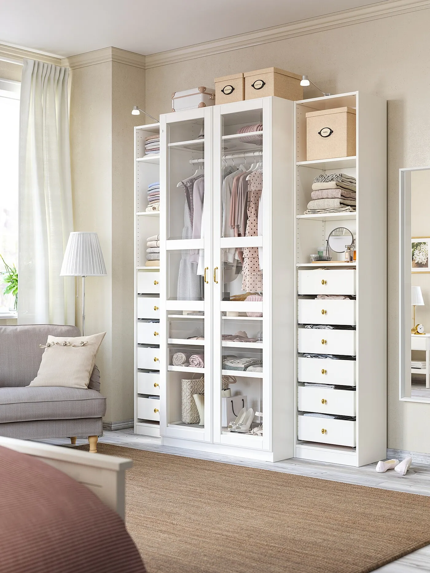 Пусть эти стеклянные двери демонстрируют красоту ваших вещей внутри гардероба! Идеально сочетаются с прочными дверями TYSSEDAL, чтобы показывать только то, что вы хотите.