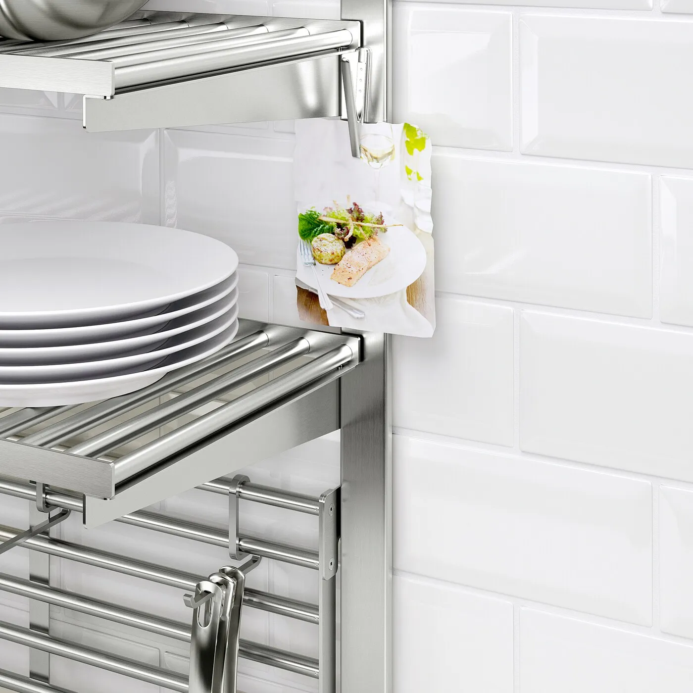 С помощью подвесного кронштейна KUNGSFORS вы можете разместить кухонные принадлежности на стене, освобождая рабочую поверхность на кухне.