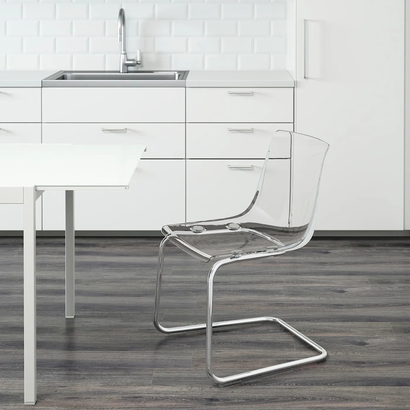 Прозрачный стул, который отражает окружающее пространство. Он подхватывает цвета комнаты и создает иллюзию, будто парит в воздухе. Благодаря гибкости сиденья, вы тоже можете почувствовать себя парящим.