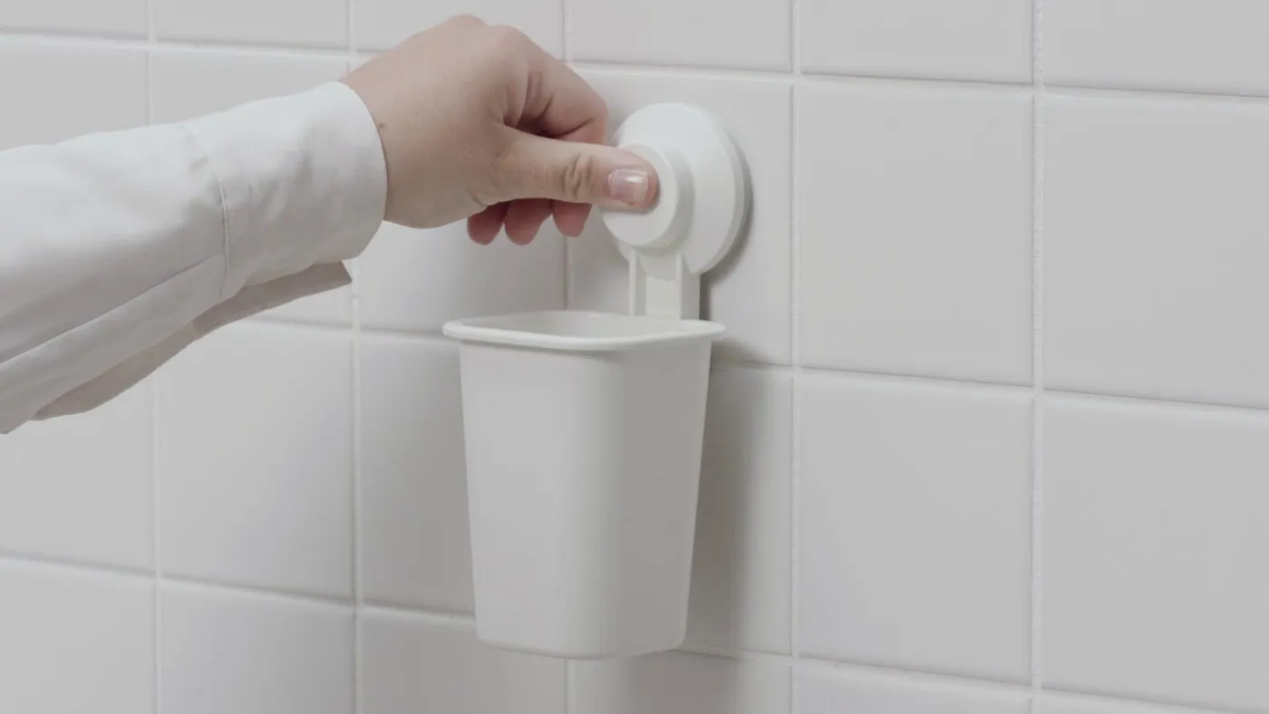 Присоски крепко держатся на гладких поверхностях, таких как стекло или плитка.