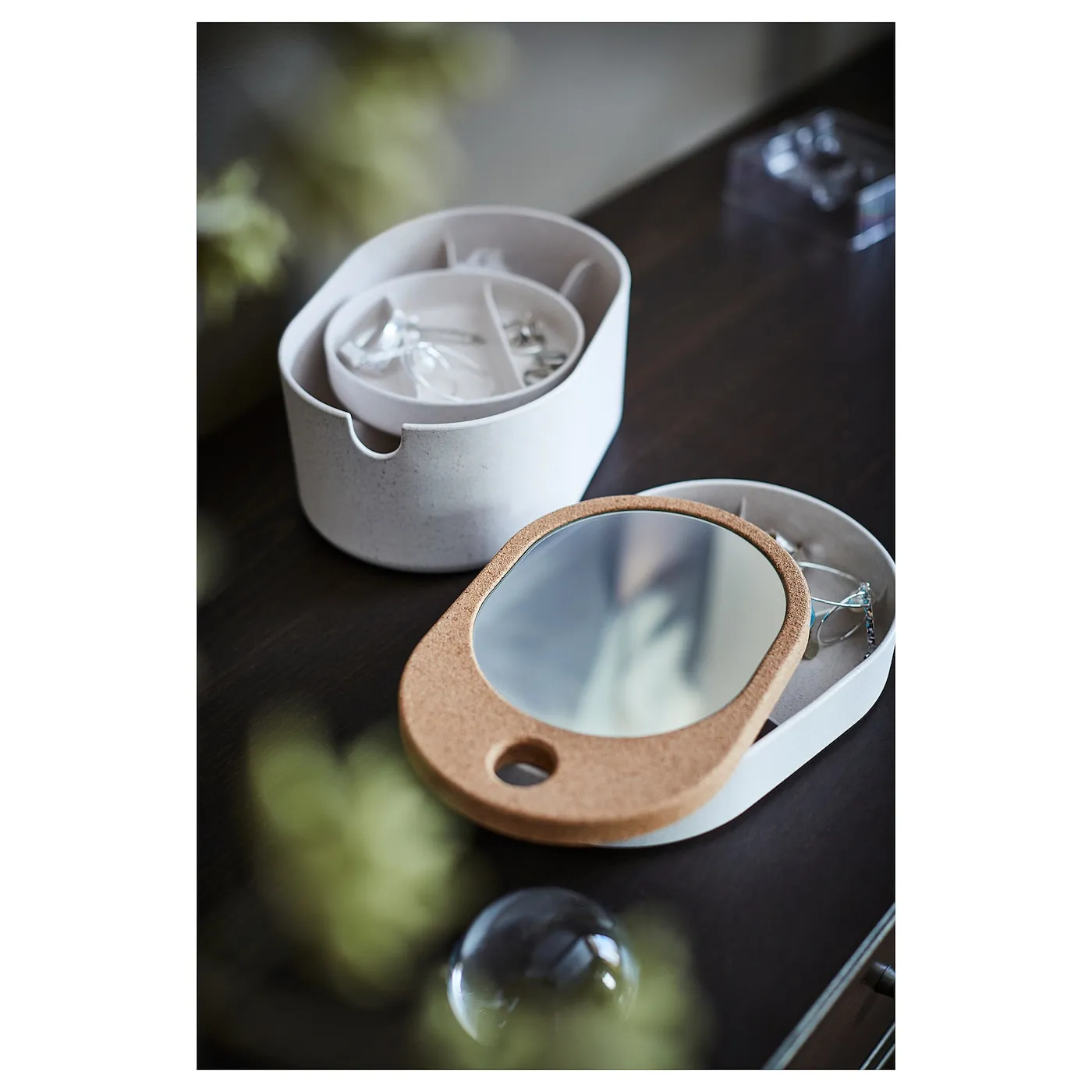 Вы можете взять коробку с собой, куда бы вы ни отправлялись, чтобы положить в нее контактные линзы, украшения или косметику. Вам не придется искать зеркало, ведь оно уже внутри.