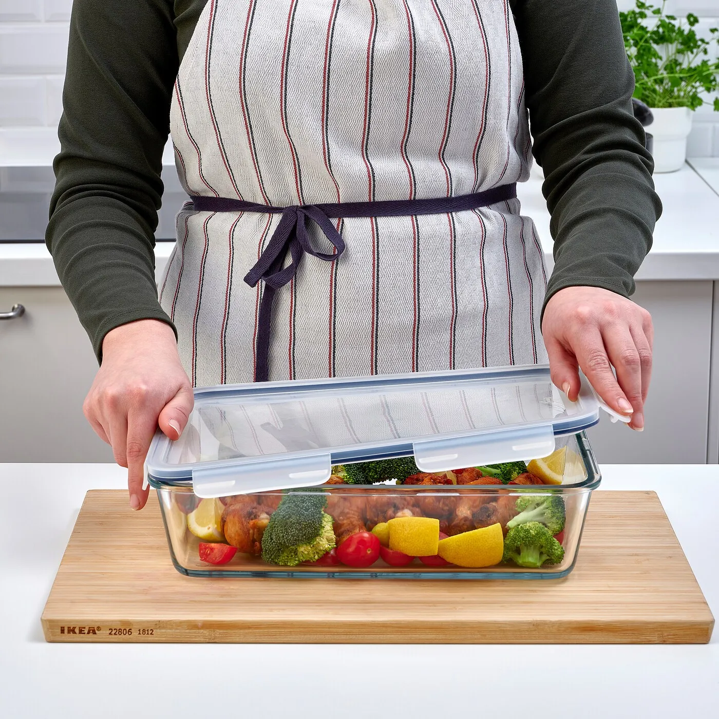 Контейнер изготовлен из жаропрочного стекла и может использоваться как форма для запекания или блюдо для подачи.