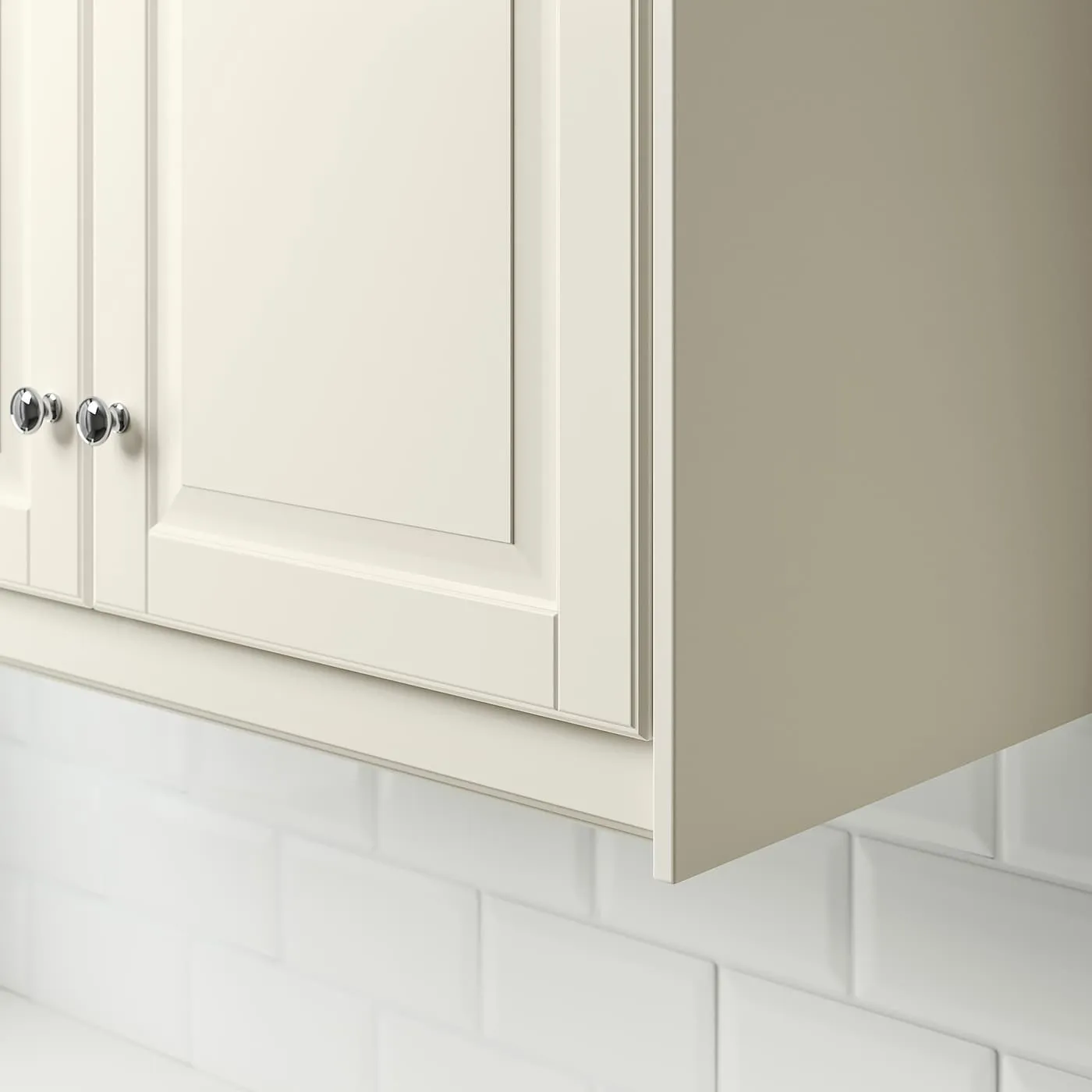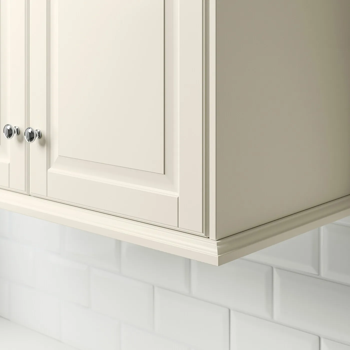 Классическое выражение в светло-белом цвете с фасками на панелях, придающими изделию традиционный и уютный характер. Фасады BODBYN легко очищаются благодаря гладкой лакированной поверхности.