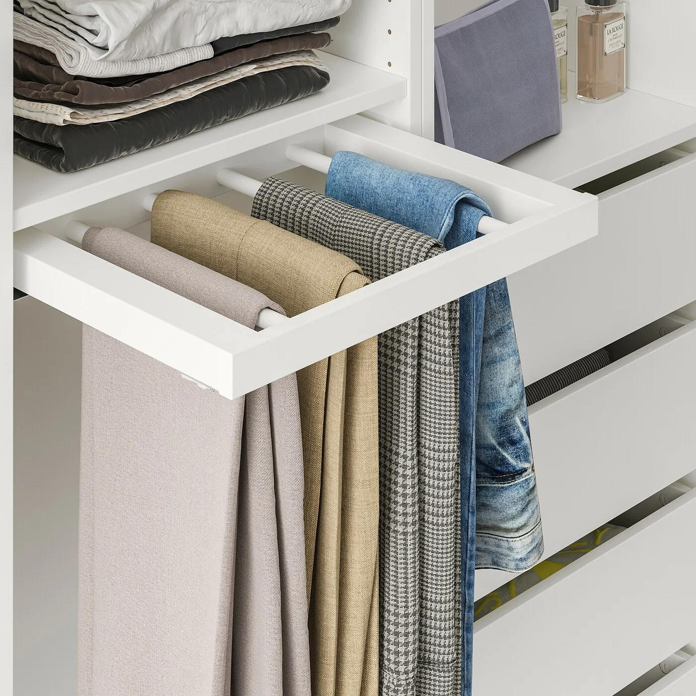 Попрощайтесь с грудами джинсов и брюк! Эта надежная вешалка для брюк обеспечивает легкий обзор и позволяет создать продуманное решение с встроенным удобством.