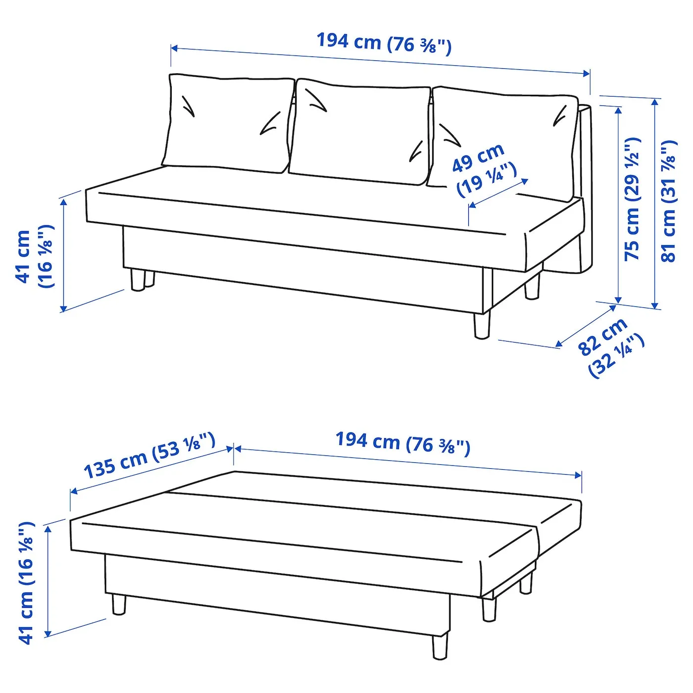 Понятный и лёгкий в использовании механизм — диван ÄLVDALEN быстро превращается в удобную двуспальную кровать для вас или ваших гостей. Также это отличное место для отдыха днём.