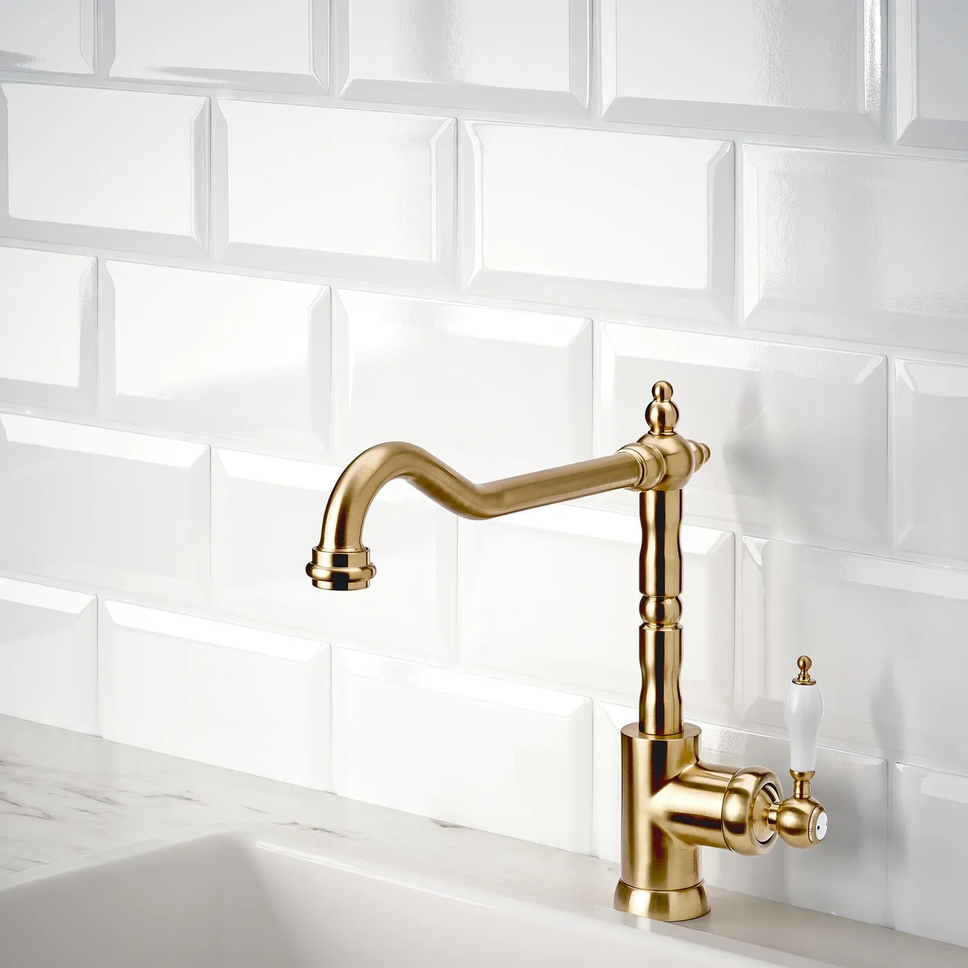 Традиционный смеситель GLITTRAN в латуни помогает снизить потребление воды и энергии, что позволяет экономить на счетах. Качество гарантирует долгие годы безупречного использования для наливания, мытья и ополаскивания.