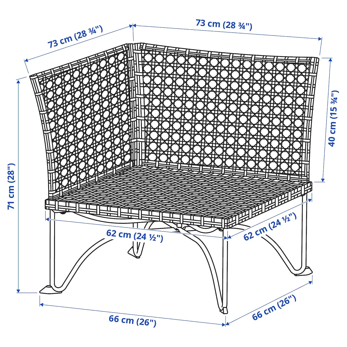 Все элементы серии JUTHOLMEN могут использоваться как по отдельности, так и вместе, чтобы создать модульный диван идеального размера для вашего балкона или террасы.