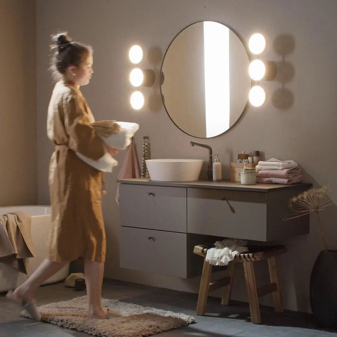 Отлично подходит для размещения над зеркалом самостоятельно или в паре с лампой по обе стороны.