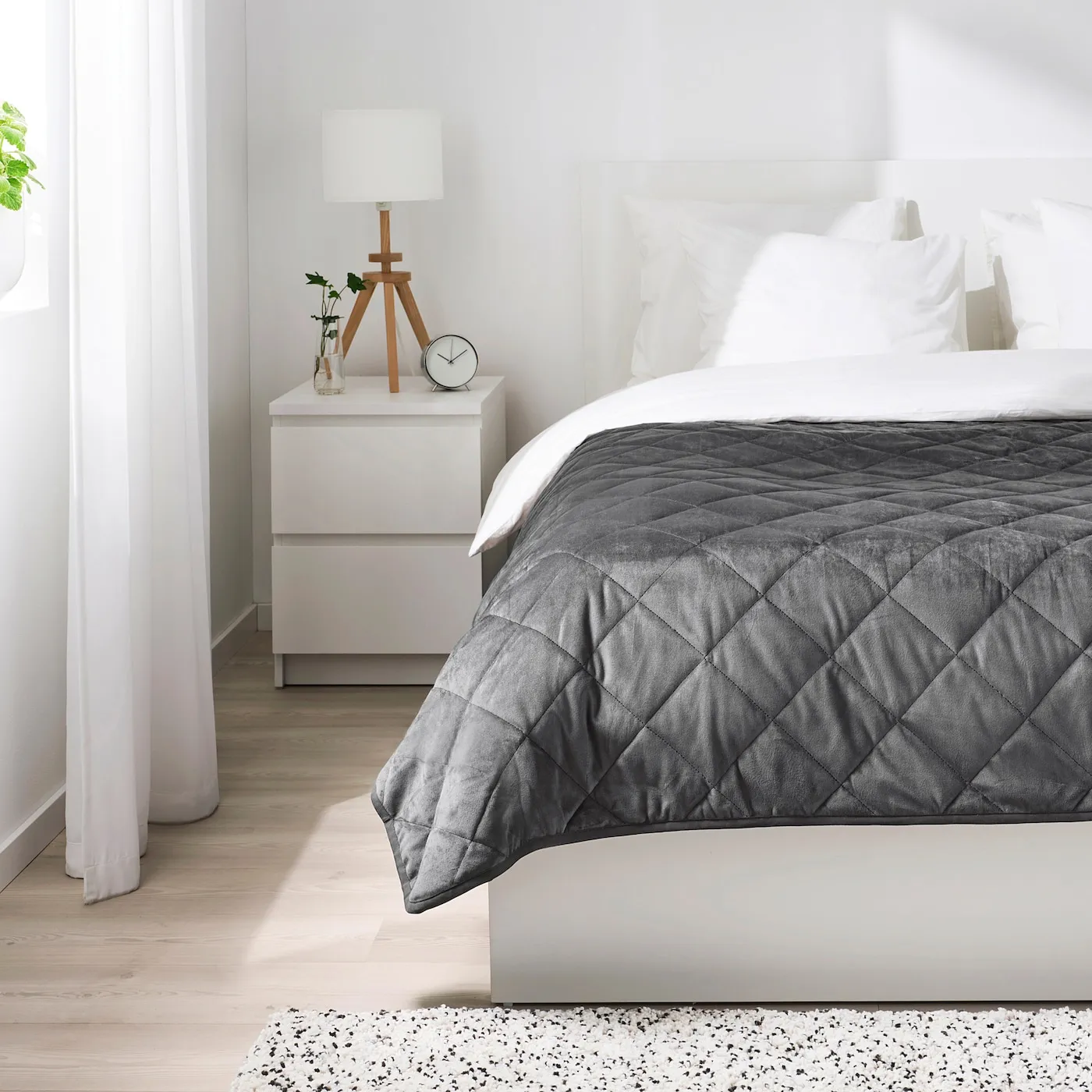Покрывало MJUKPLISTER выполнено из нежного бархата из полиэстера, который приятно ощущается и добавляет нотку роскоши. Тёмно-серый оттенок отлично сочетается с различными подборками постельного белья в нашем ассортименте, создавая атмосферу уюта и гармонии.