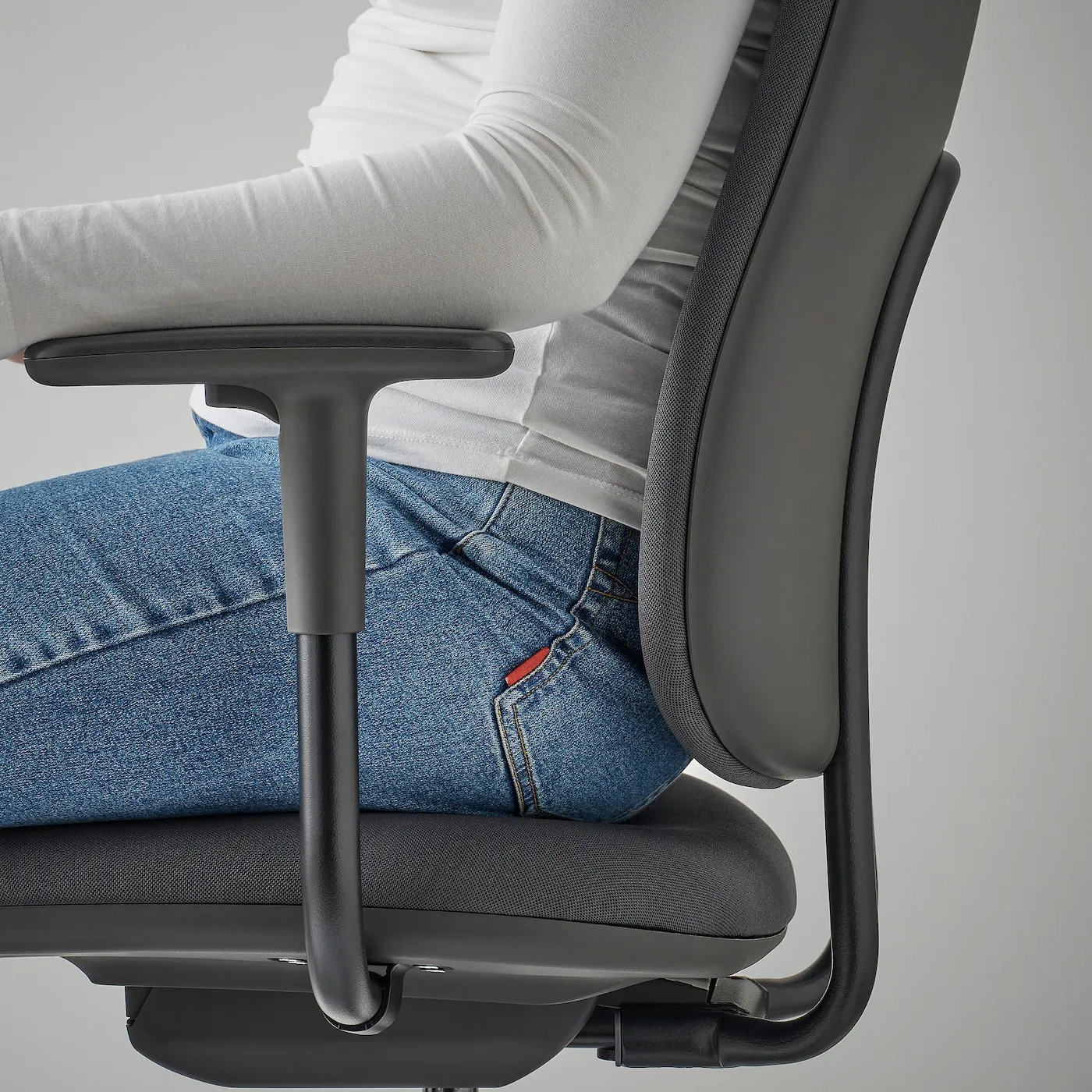 Синхронизированный механизм наклона позволяет креслу двигаться вместе с вами. Спинка наклоняется больше, чем сиденье, когда вы откидываетесь, что открывает корпус и таз. Это улучшает циркуляцию и помогает оставаться бодрым.
