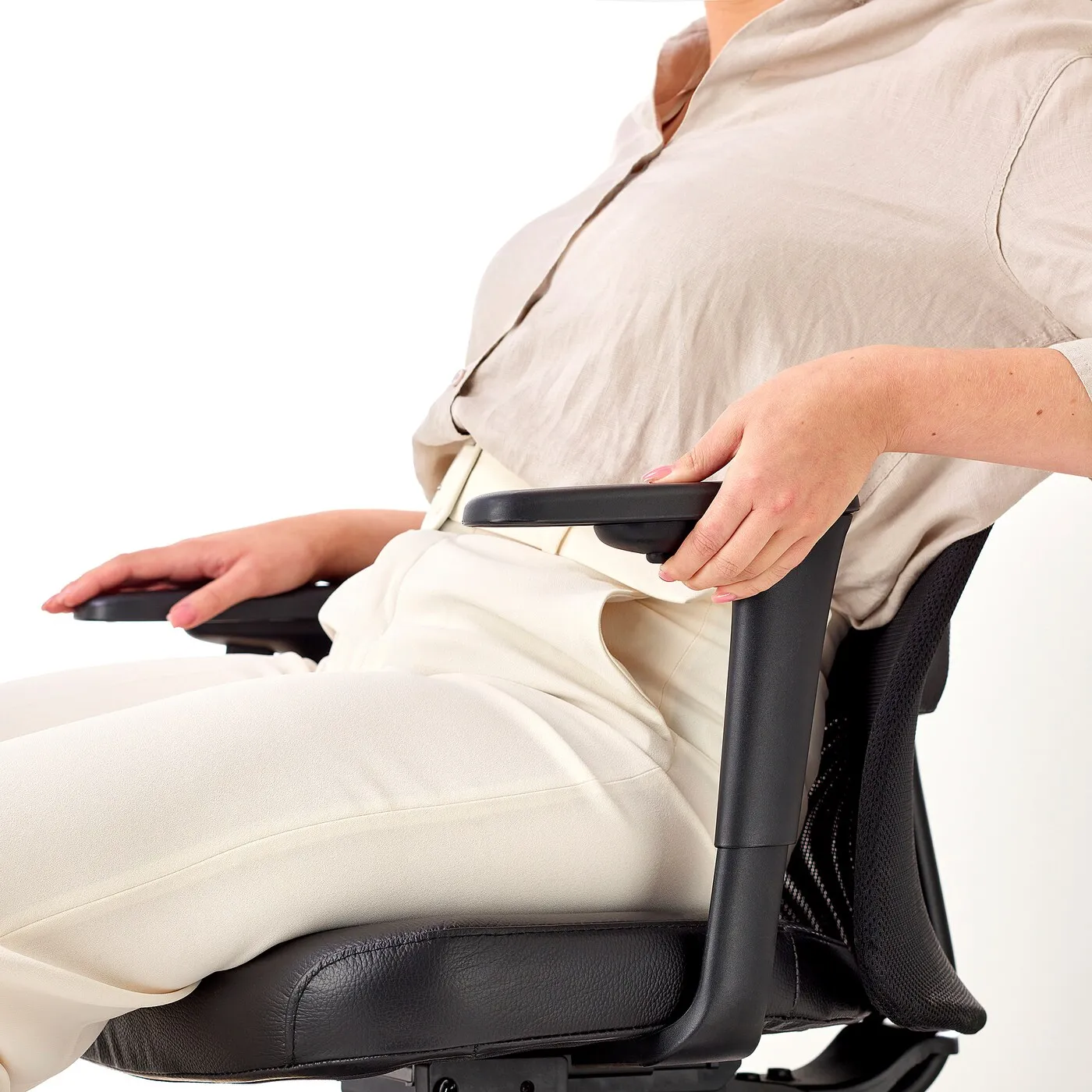 Регулируемая глубина сиденья обеспечивает правильную поддержку спины и равномерное распределение веса на подушке сиденья. Это предотвращает пережимание сосудов в районе колен и снижает давление.