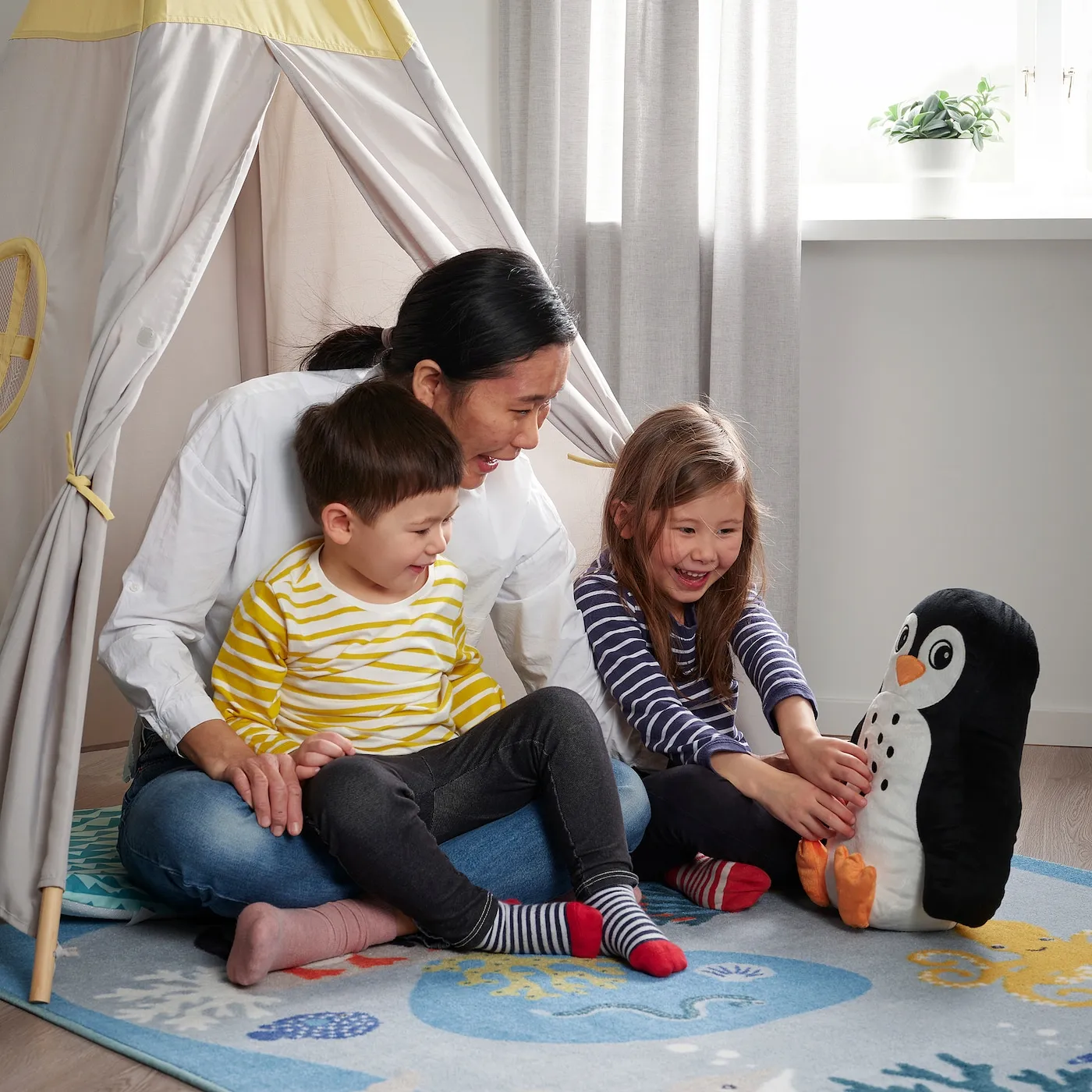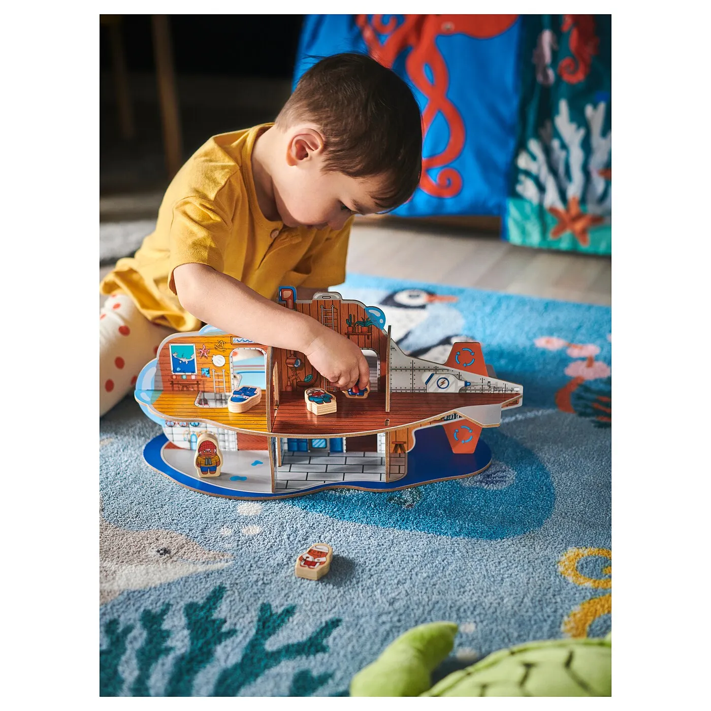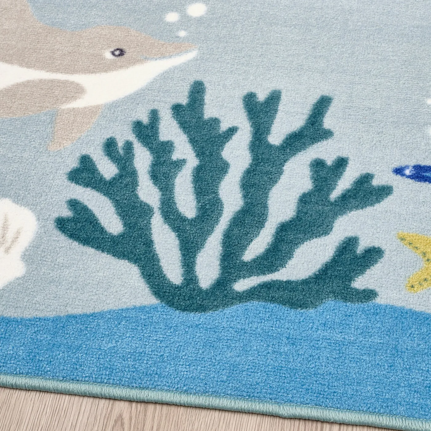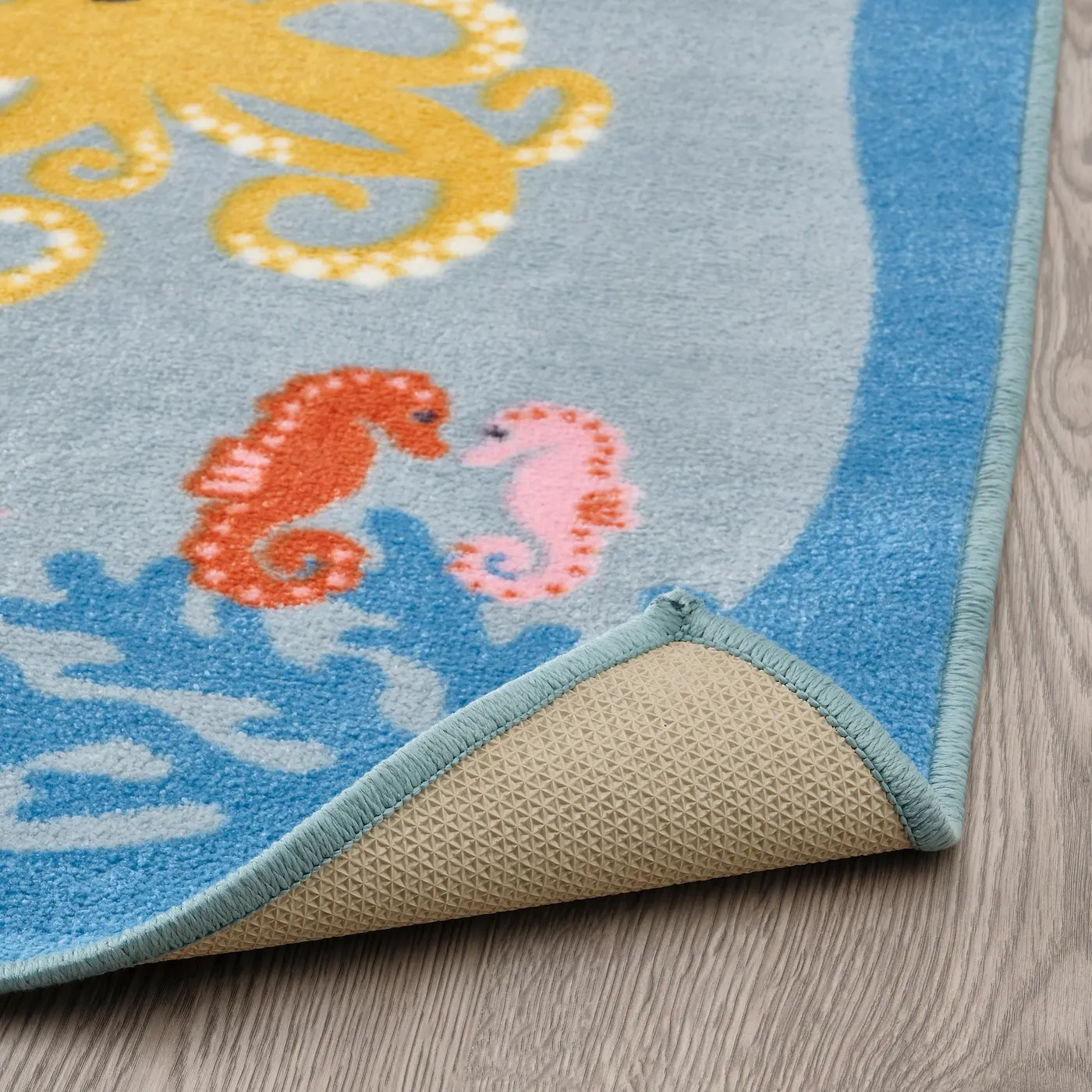 Этот ковер превращает пол в сказочный подводный мир. Мягкий на ощупь для ходьбы и игр, при этом обладает прочным ворсом из переработанного полиэстера, собранного из пластика на побережьях.