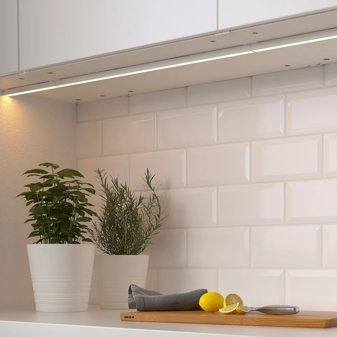 Вы можете легко смягчить освещение на кухне, когда ужинаете или общаетесь, так как эта подсветка диммируемая.