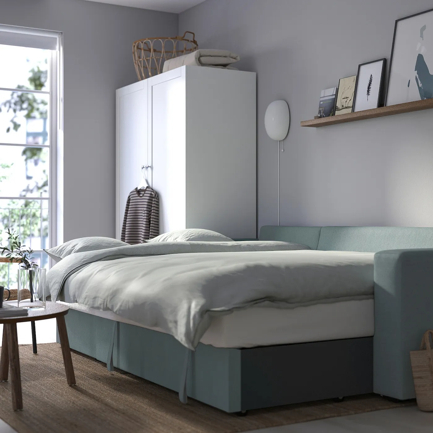 Мягкие формы и большие удобные подушки заставят вас мечтать о диване-кровати BÅRSLÖV. На нем можно отдохнуть, посидеть или поспать, а практичное хранение окажется приятным бонусом. Ткань проста в уходе и сохраняет диван в отличном состоянии!