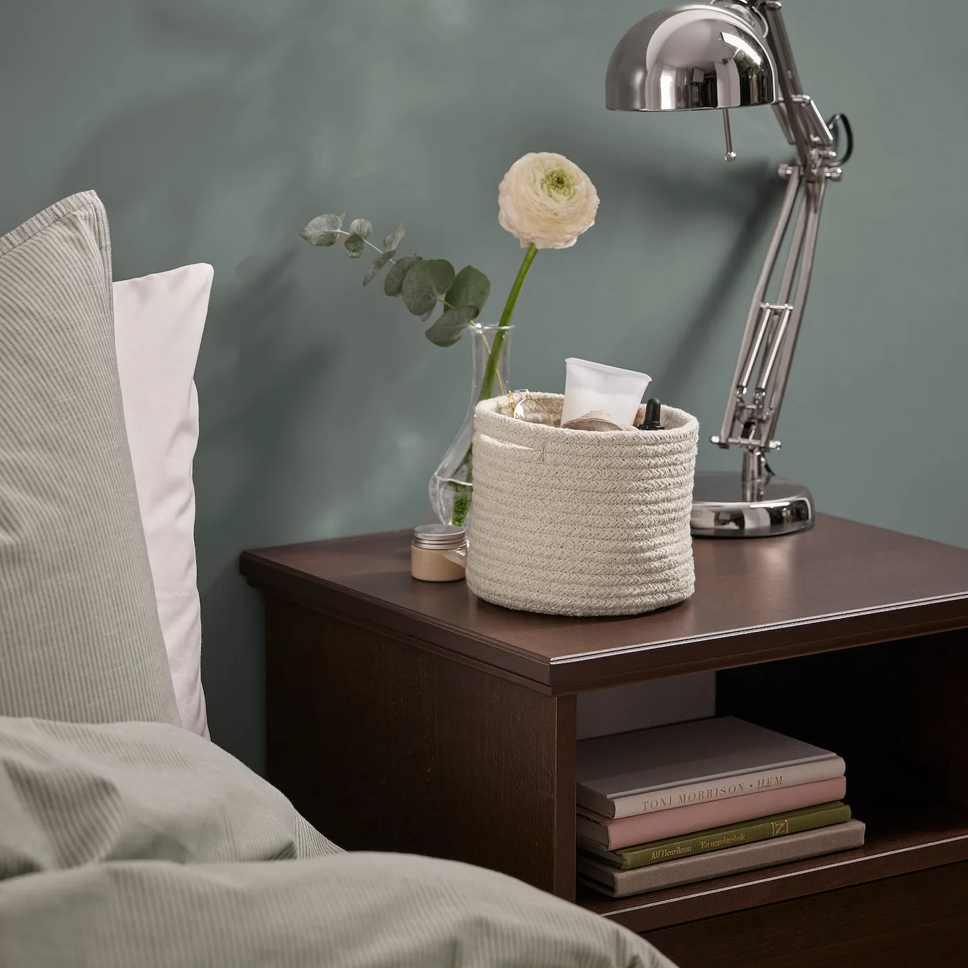 Эта корзинка чуть меньшего размера сшита из плетеных нитей небелёного хлопка, что придаёт ей мягкий и естественный вид. Вечная классика для хранения самых разных мелочей.