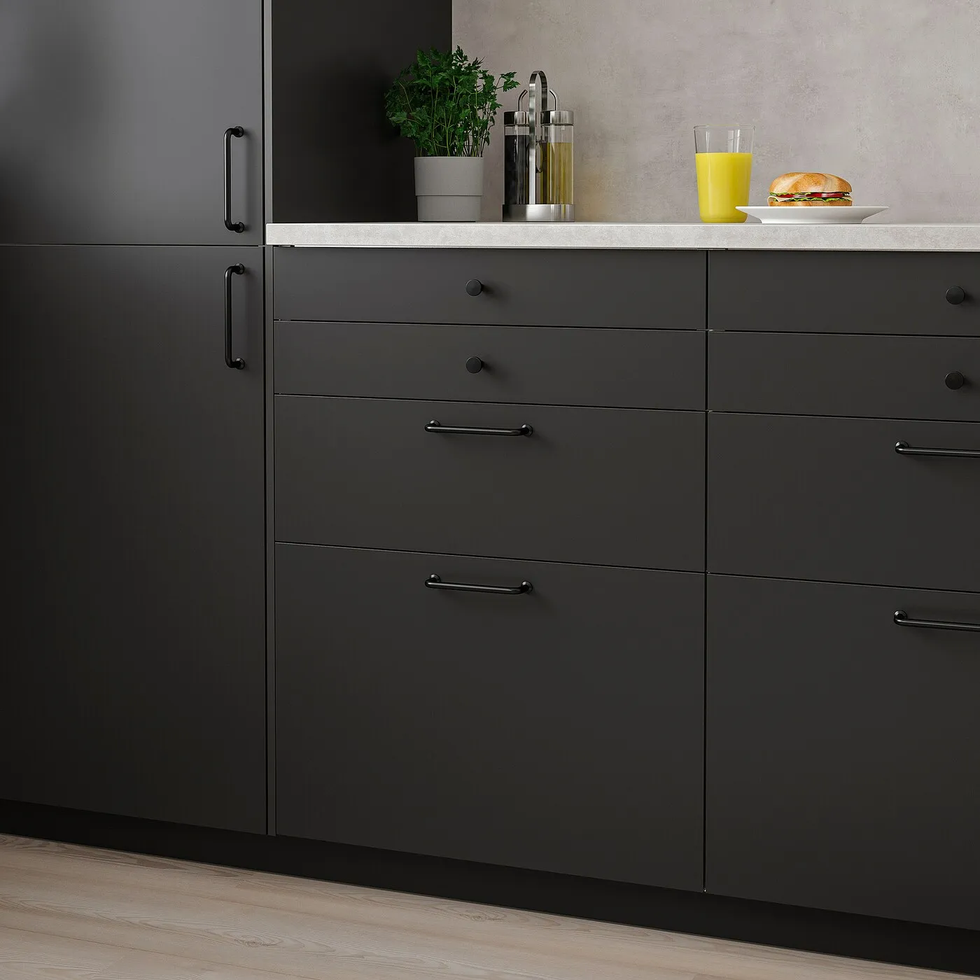 Можно дополнить панелями FÖRBÄTTRA, цоколями и декоративными планками в антрацитовом цвете.