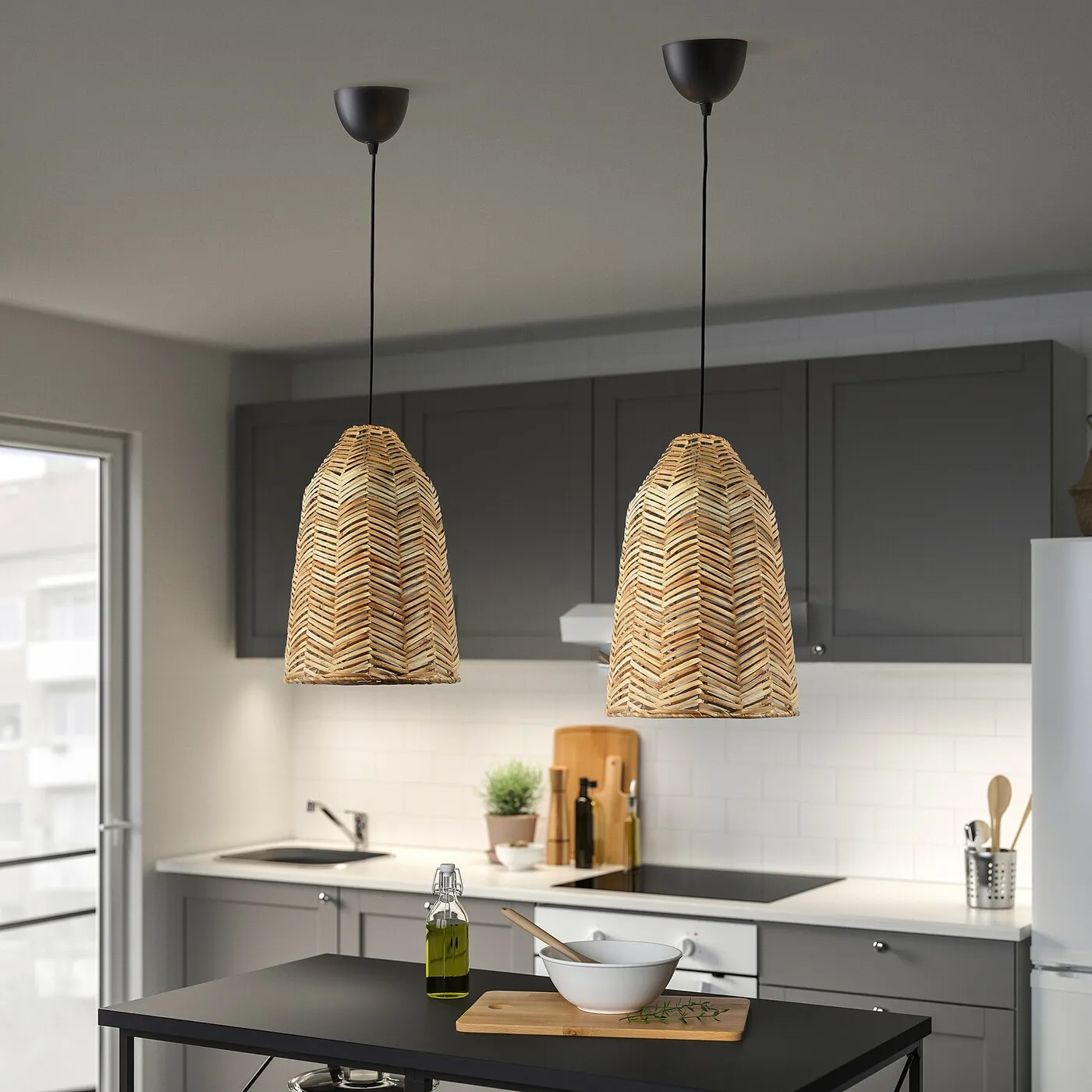 Этот плетеный вручную абажур из ротанга с декоративным узором «елочка» подходит к большинству интерьеров и создает в вашем доме теплую и гостеприимную атмосферу.