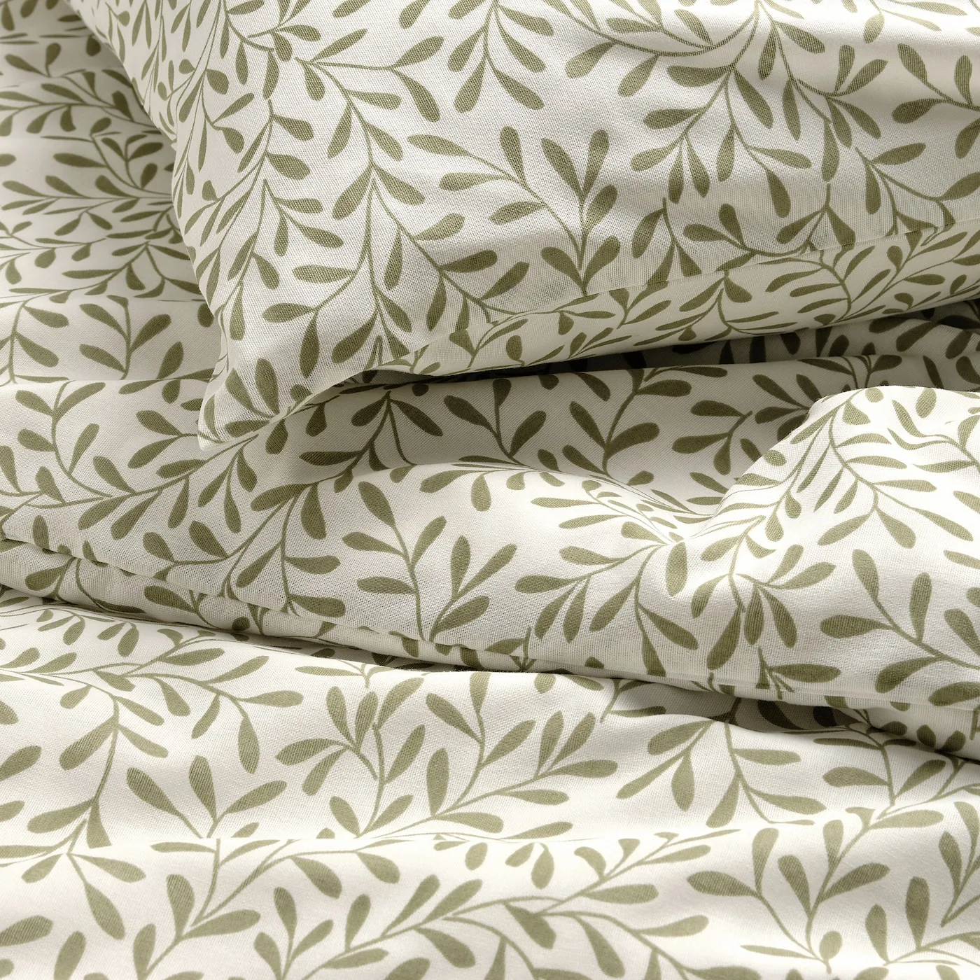 Растительный узор добавляет природную атмосферу вашему дому. Набор изготовлен из смеси переработанного полиэстера и натурального хлопка, обеспечивая гладкую ткань, которая дышит и впитывает влагу.
