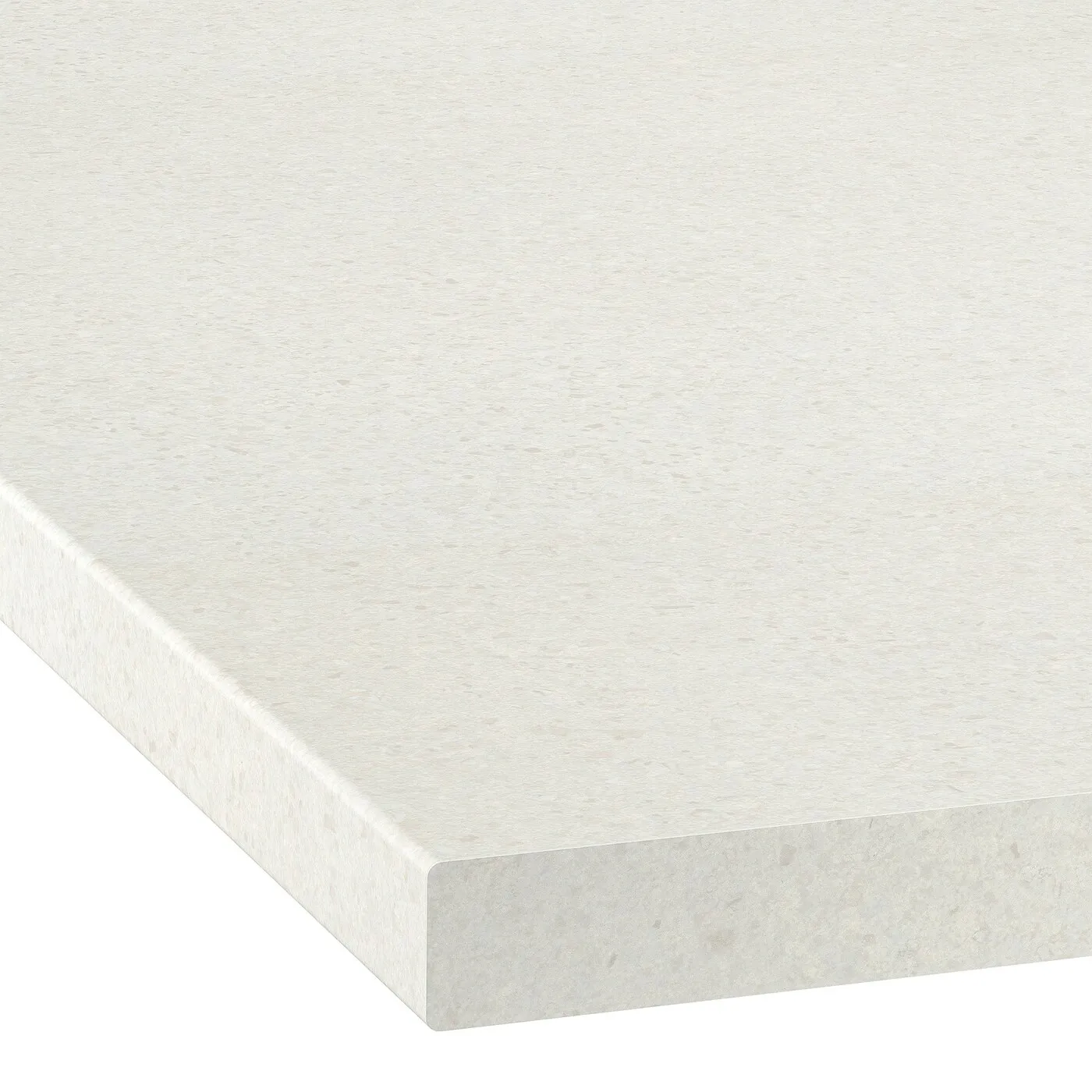 Столешница SÄLJAN с закругленными краями отличается долговечным качеством ламината и сохраняет свою привлекательность со временем. Нейтральный светло-серый узор под камень на белом фоне легко сочетается с большинством кухонных фасадов.