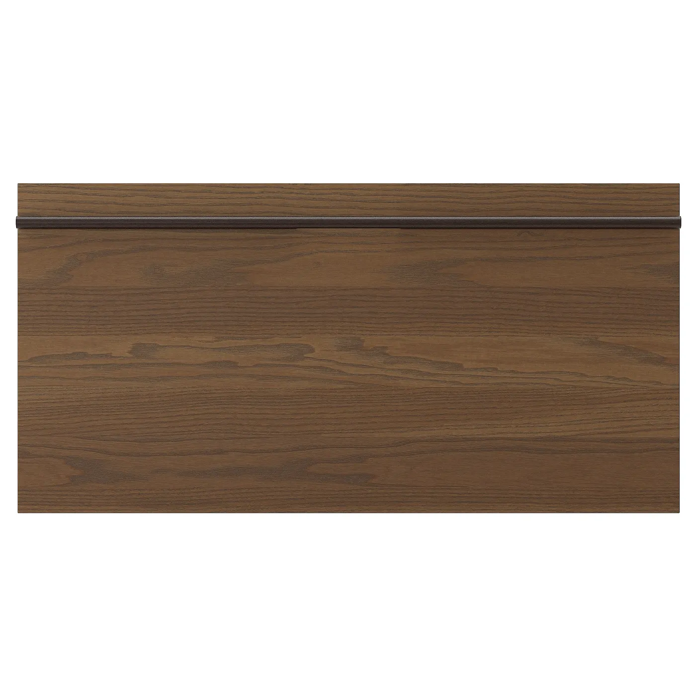 Серия кухонных фасадов STENSTA с темно-коричневым окрашенным ясеневым шпоном подчеркивает природную красоту дерева благодаря ярко выраженному рисунку текстуры, который делает каждую деталь уникальной.