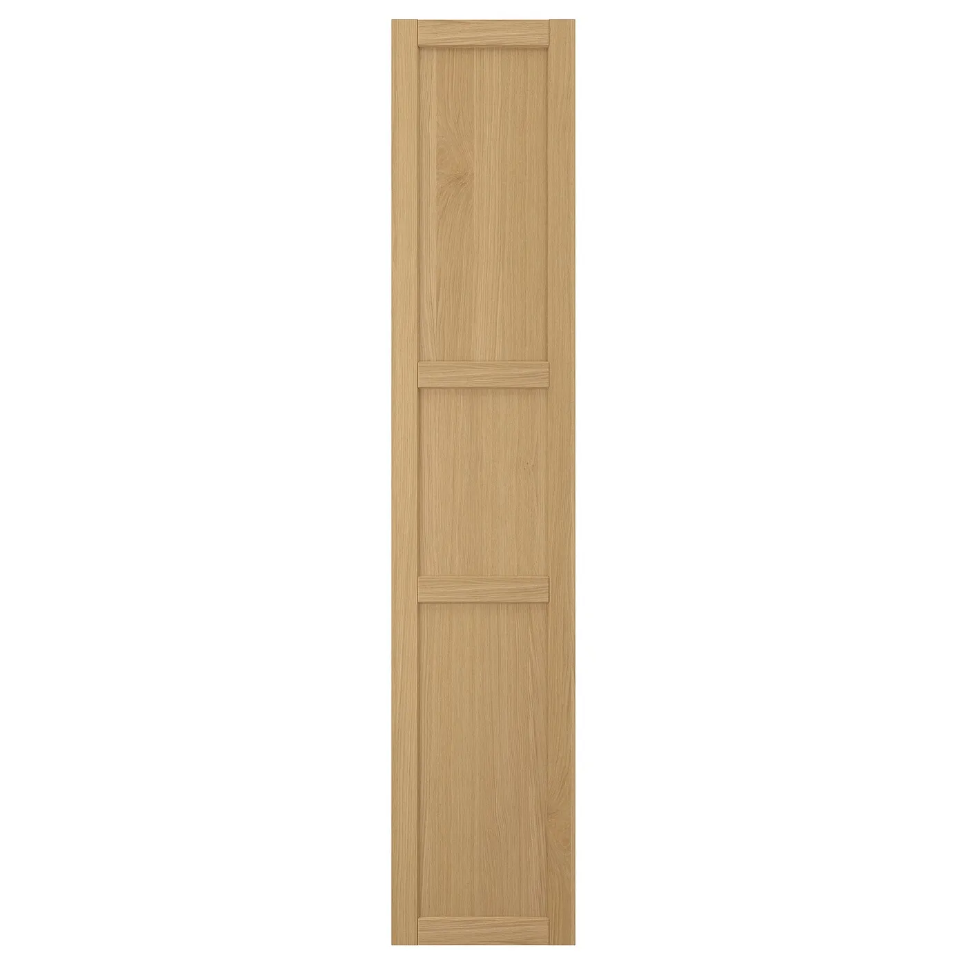 Фасады кухни FORSBACKA из теплого дубового шпона создают уютную атмосферу. Рама с скошенными краями придает дверце классический, традиционный характер.