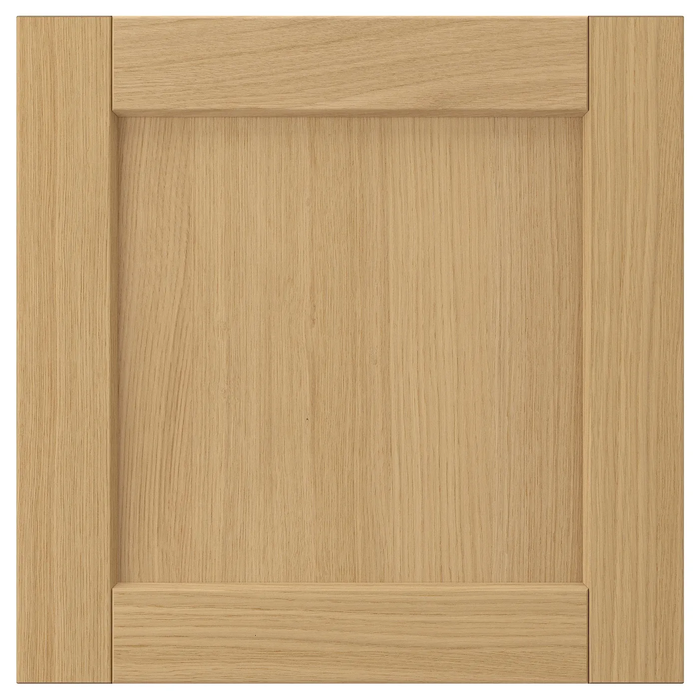 Фасады кухни FORSBACKA из теплого дубового шпона создают уютную атмосферу дома. Обрамленные ящики с фасками придают классический, традиционный вид.