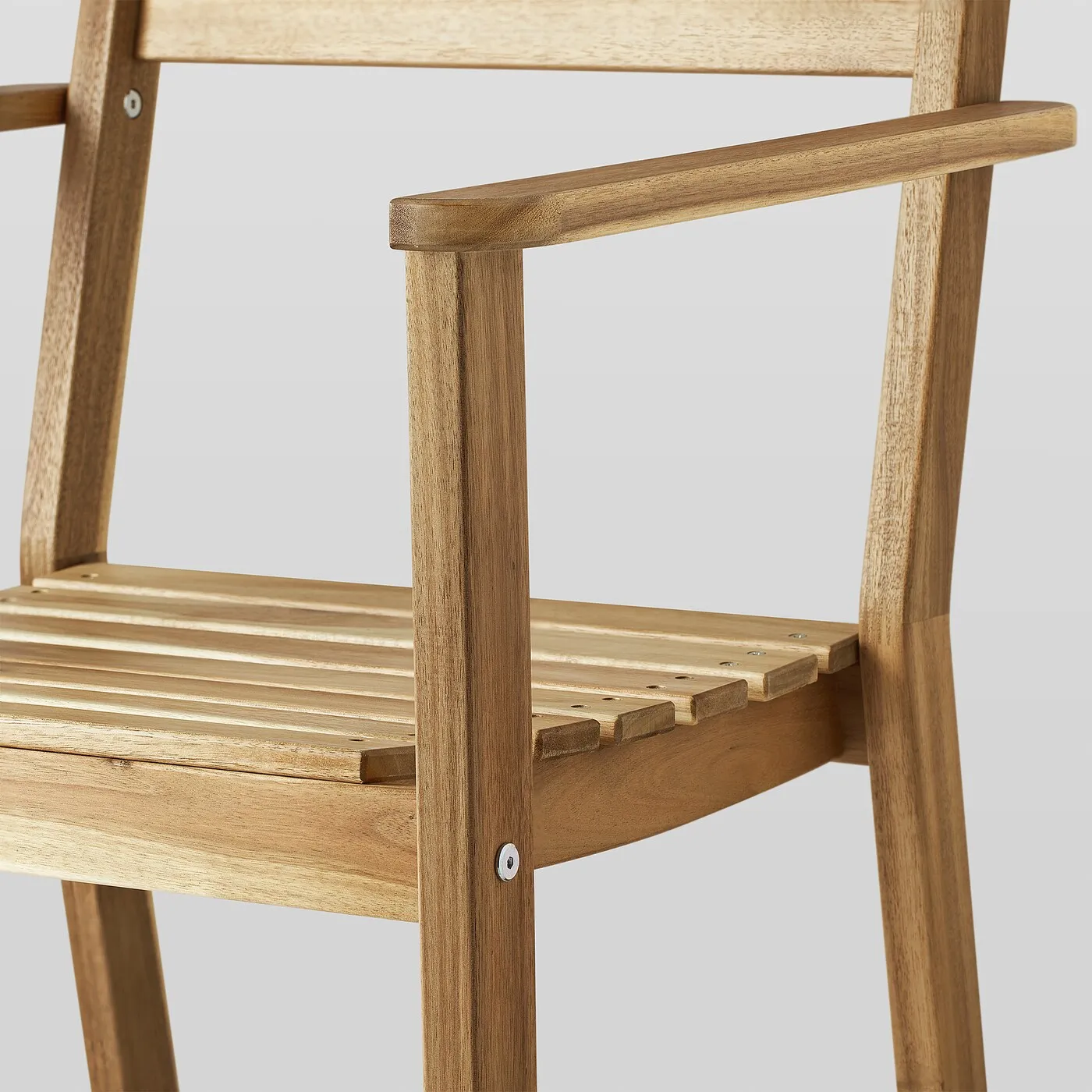 Удобное кресло из прочной древесины с приятной поддержкой для рук. Идеально подходит для долгих обедов на свежем воздухе. Легко складывается и убирается, когда сезон заканчивается, или если нужны запасные места для гостей.
