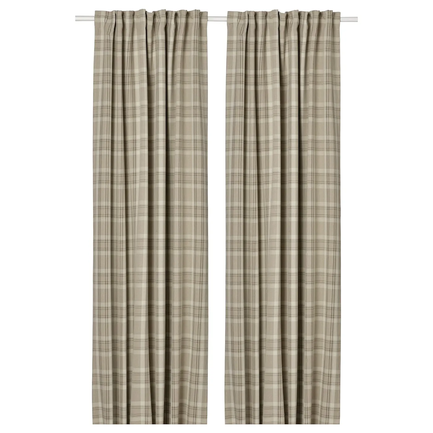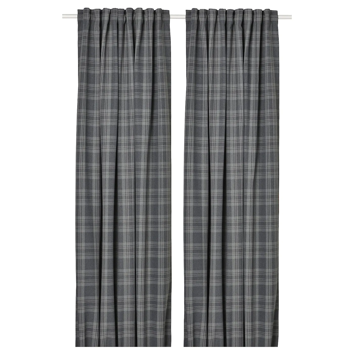 Затемняющие шторы HÄGGVECKMAL с классическим тёмно-серым клетчатым узором, напоминающие шерстяные, и с подходящей подкладкой обеспечивают хорошую приватность. Длина 250 см – идеально для подвешивания над окном.