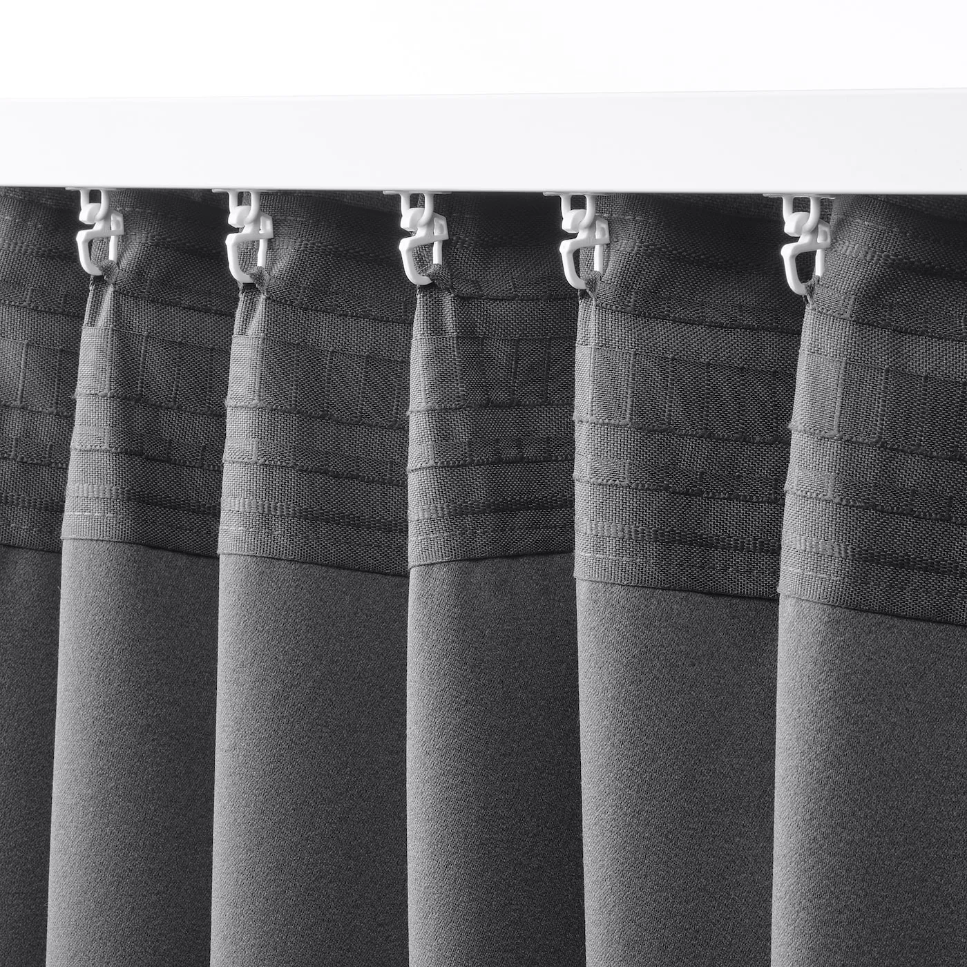 Обычно рекомендуется использовать 16 бегунков и крючков для каждой шторы шириной 145 см. Вы можете уменьшить или увеличить их количество, в зависимости от того, хотите ли вы более узкие или более пышные складки.