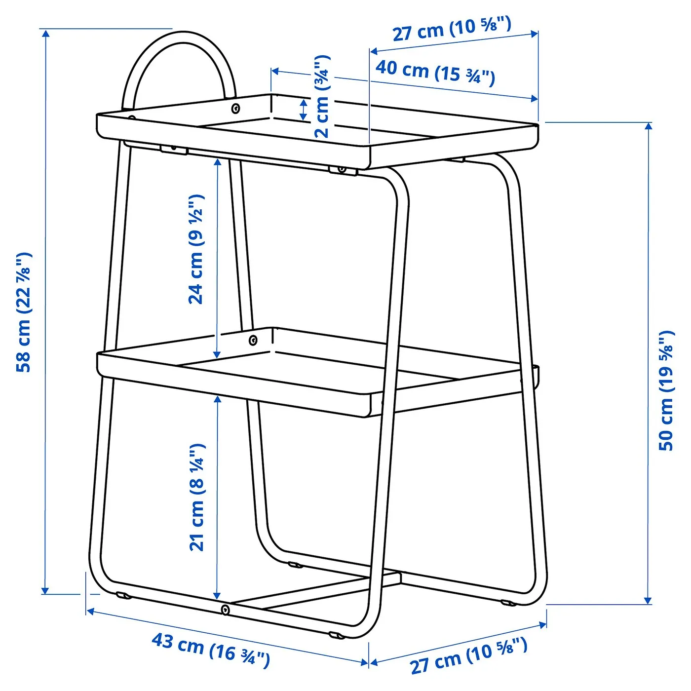Ваши вещи остаются на месте при перемещении столика, так как его две полки оснащены высокими бортиками.