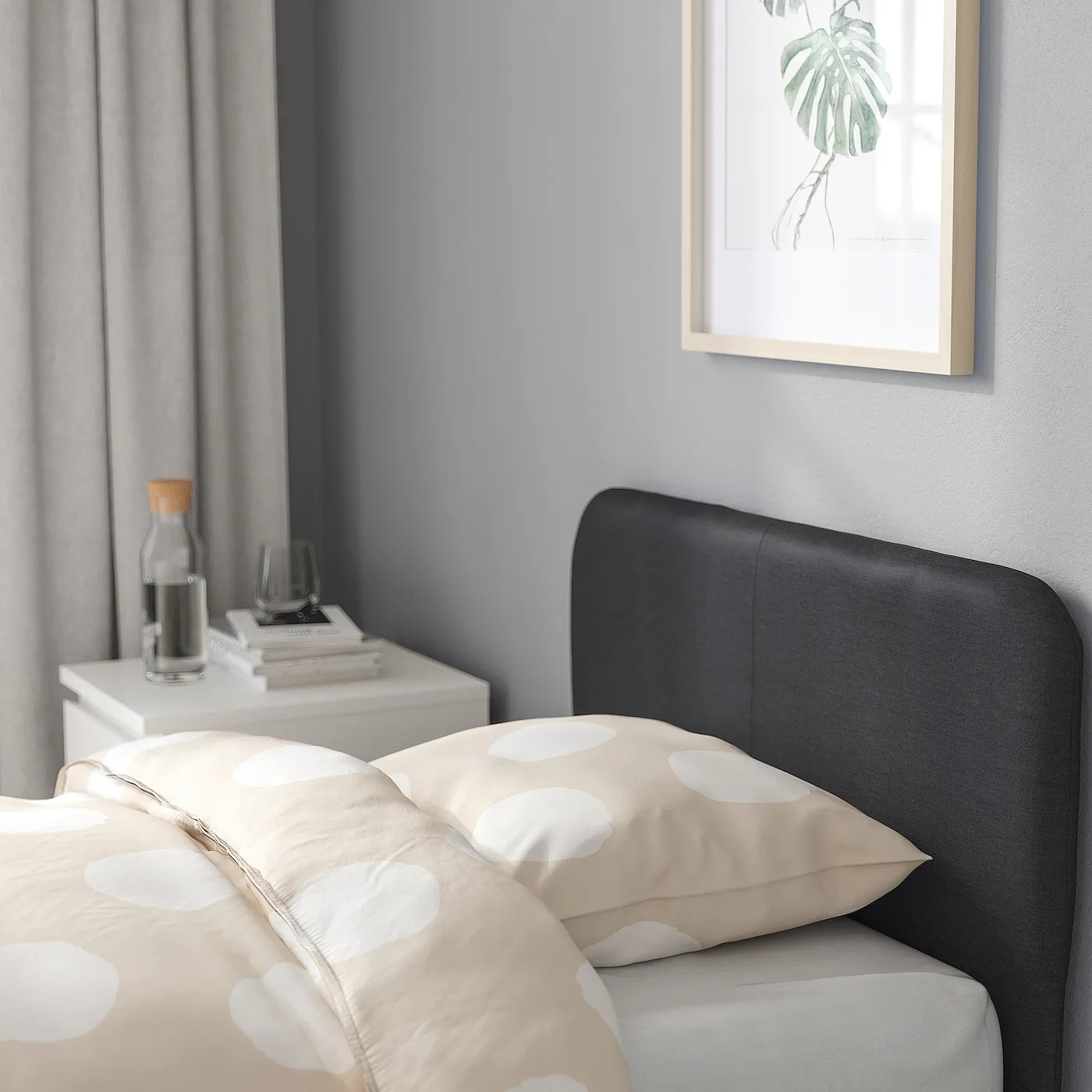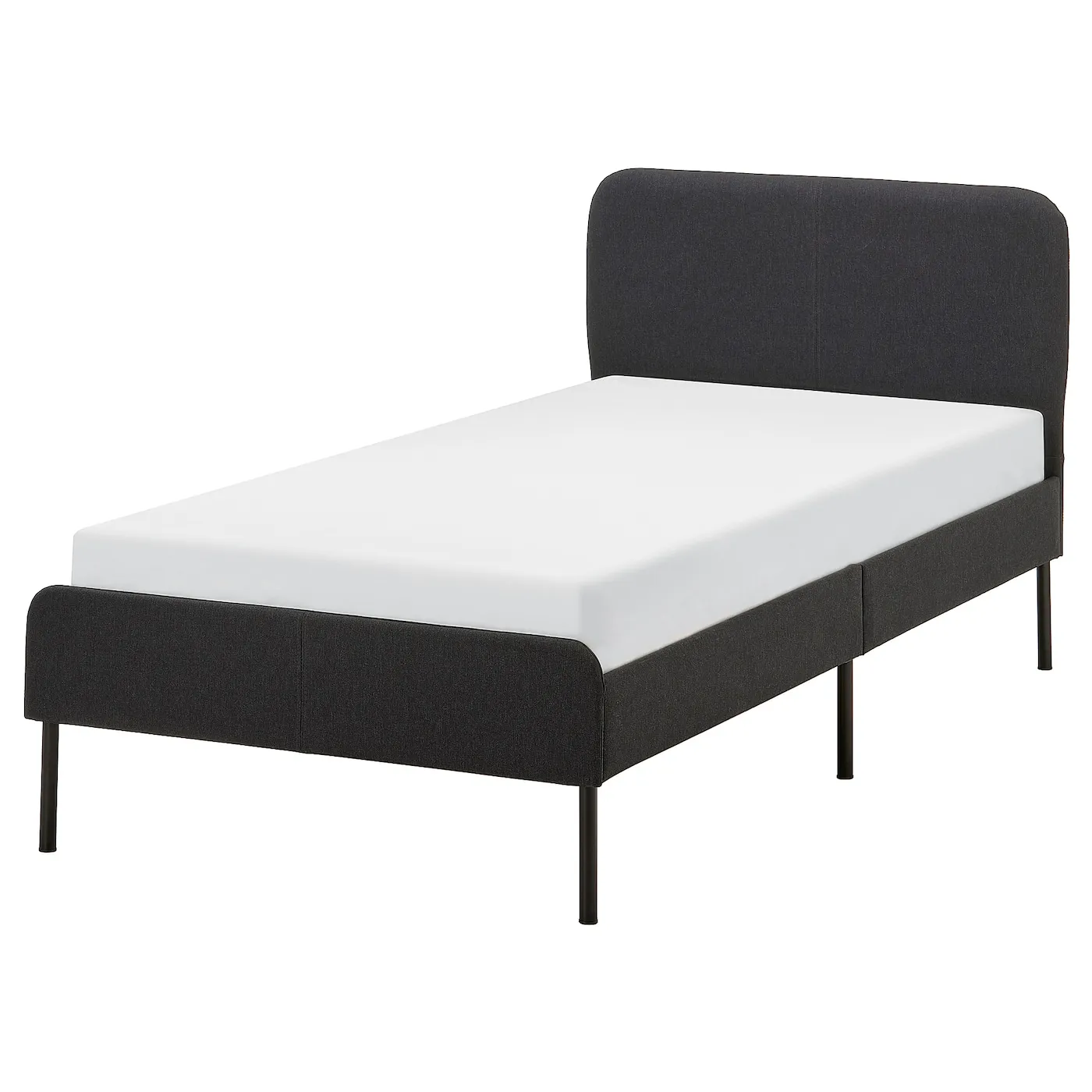 Рама для кровати SLATTUM имеет мягкую обивку и изголовье, которые завершают стильные и простые линии. Легко понравится и удобно забрать домой, так как вся рама упакована в одну коробку.