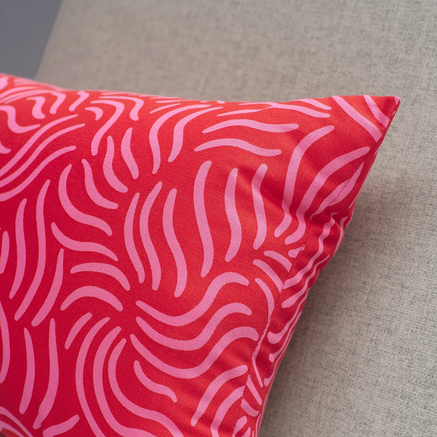 Подушка SANDMOTT привносит скандинавский стиль с ярким красно-розовым рисунком, оживляющим ваш дом. Легко сочетается с другими чехлами для подушек и пледами из нашей коллекции.