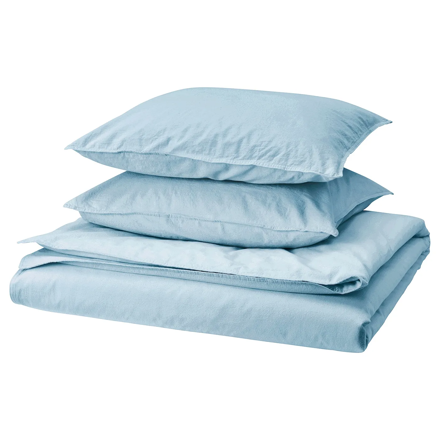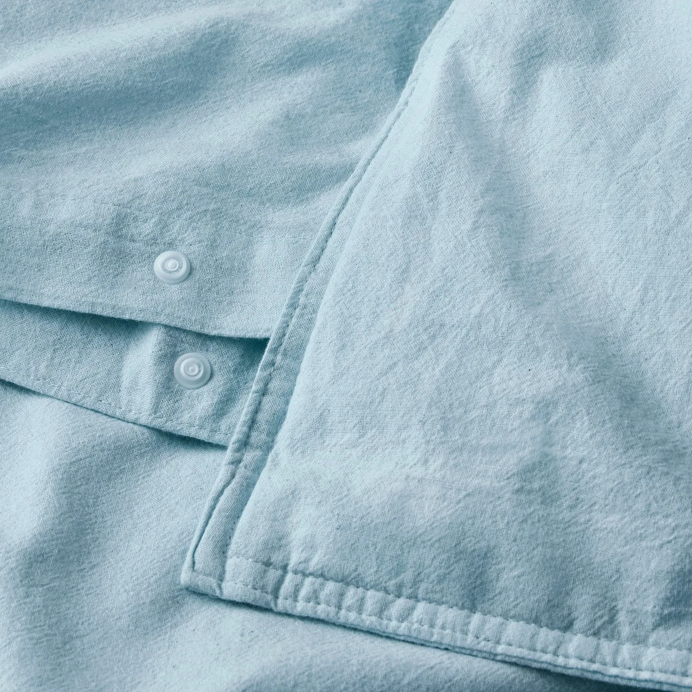 Комплект постельного белья ÄNGSLILJA выполнен из 100% предварительно выстиранного хлопка, который мягкий на ощупь, «дышит» и хорошо впитывает влагу. Природный оттенок создает в вашей спальне атмосферу уюта и спокойствия.