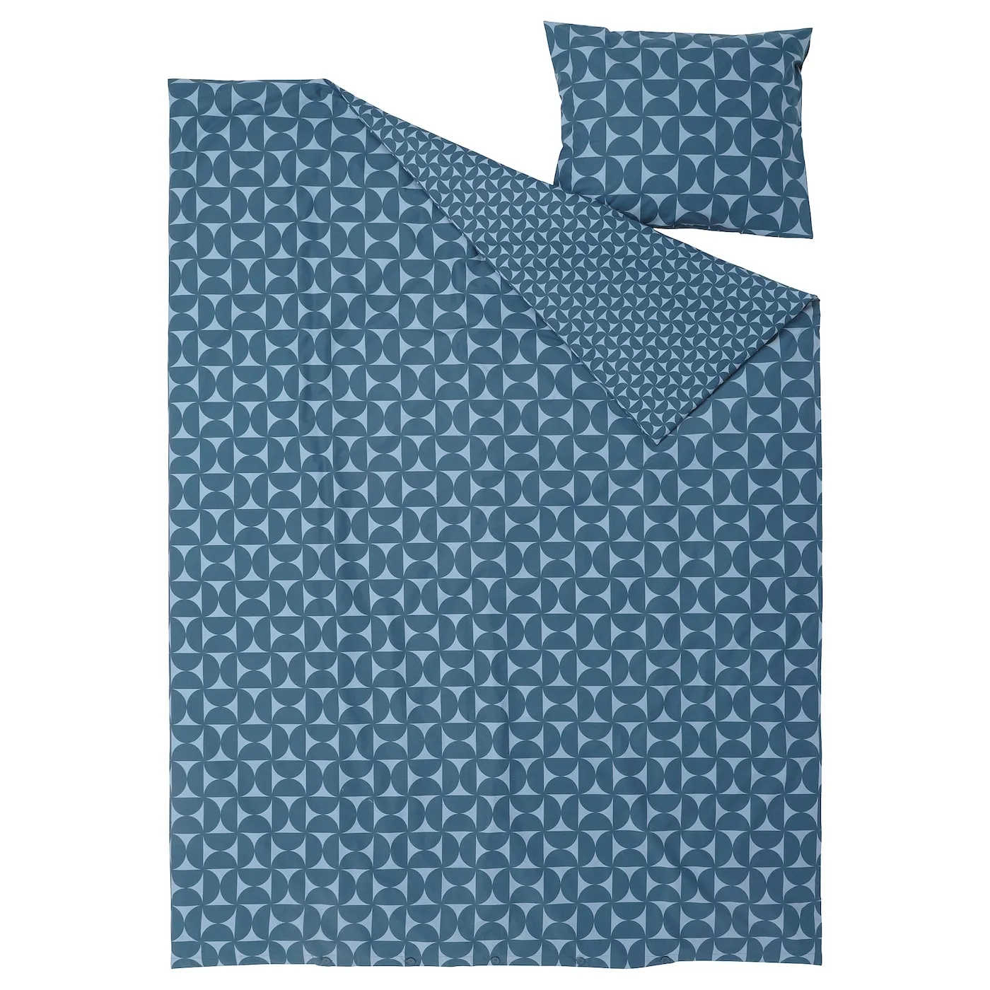 Комплект с графическим узором в легкосочетаемых темных и светлых синих тонах. Плотная ткань перкаля и тонкая пряжа из хлопка и вискозы делают материал прохладным, свежим и мягким.