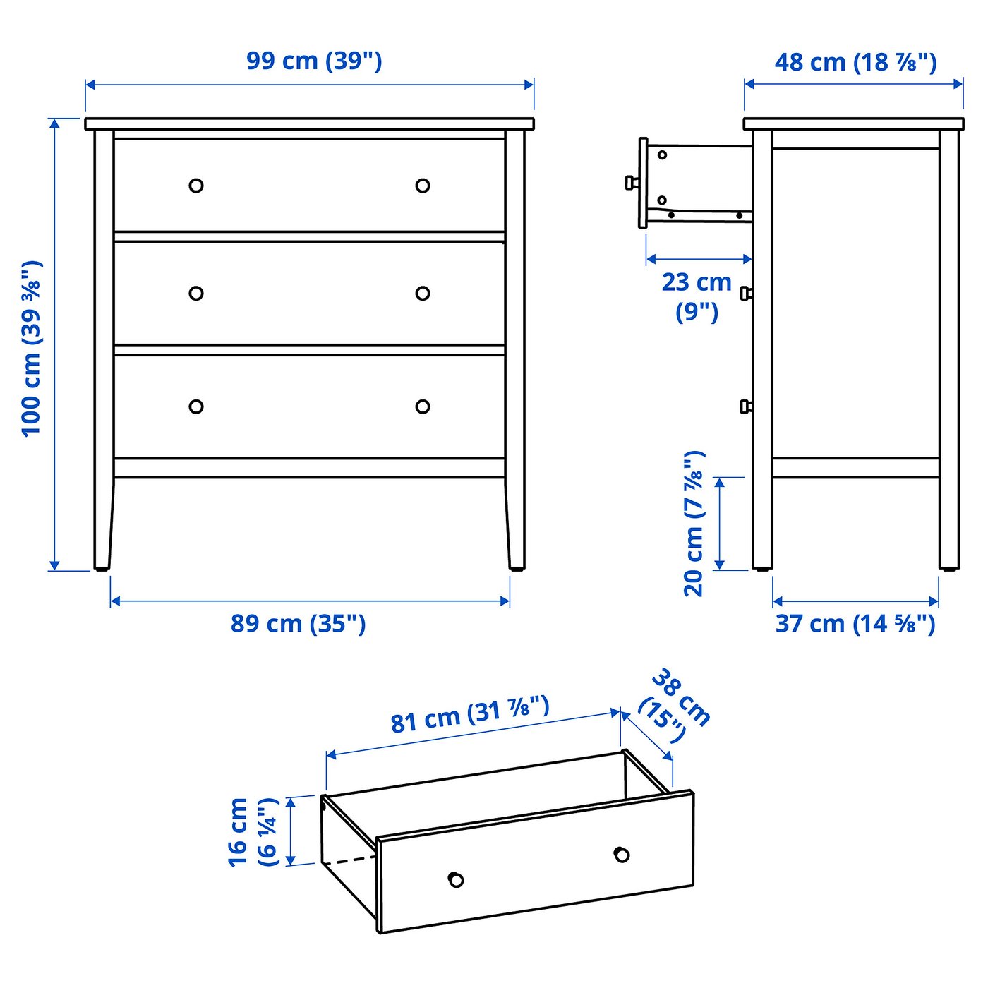 Этот легко размещаемый комод имеет 3 плавно выдвигаемых ящика с большим количеством места для ваших вещей.