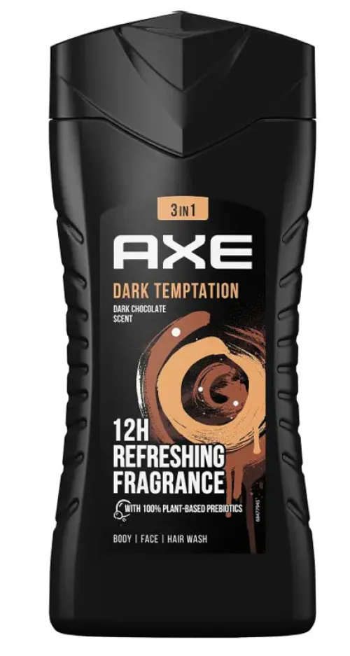 Гель для душа Axe Dark Temptation 3в1 эффективно очищает лицо, тело и волосы и оставляет на коже невероятно свежий аромат на срок до 12 часов.
