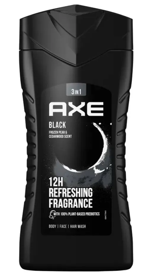 Гель для душа Axe Black 3в1 эффективно очищает лицо, тело и волосы и оставляет на коже невероятно свежий аромат на срок до 12 часов.