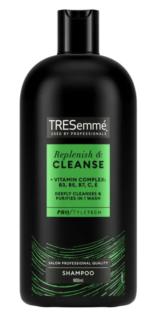 Шампунь TRESemmé Replenish and Cleanse Shampoo, содержащий витамин С и экстракт мандарина, мягко осветляет и удаляет налет и остатки, придавая волосам ощущение свежести и очищенности.