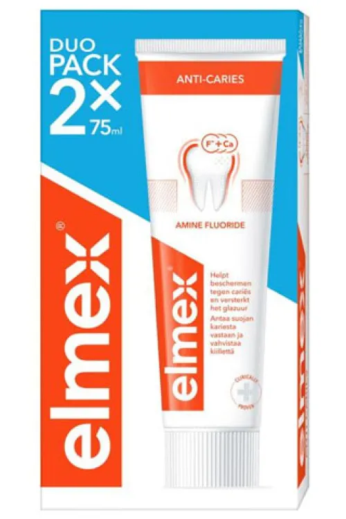 Зубная паста Elmex Caries Protector — это высококачественный продукт, специально разработанный для защиты зубов от кариеса. В упаковке содержится два тюбика по 75 мл, что делает её удобной для длительного использования.