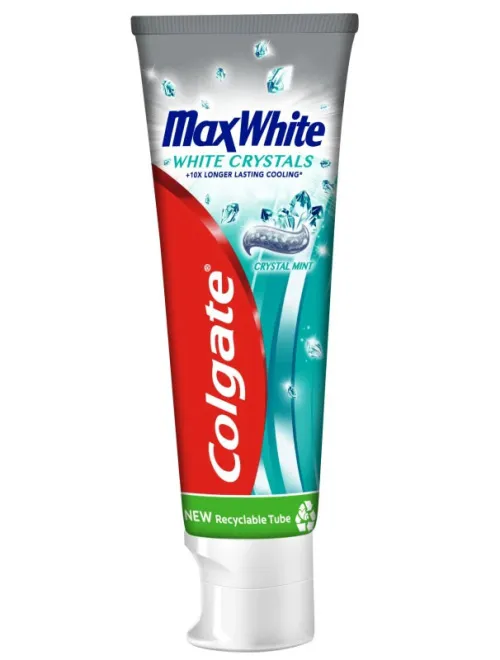Colgate Max White восстанавливает естественную белизну зубов, очищает и освежает полость рта, предотвращает кариес.