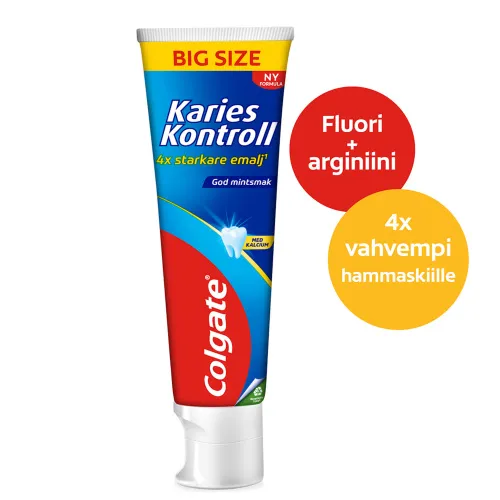 Зубная паста Colgate Fluor+ Karies Kontrol эффективно защищает зубы от кариеса и нейтрализует кислотное воздействие до того, как оно успеет ослабить зубную эмаль.