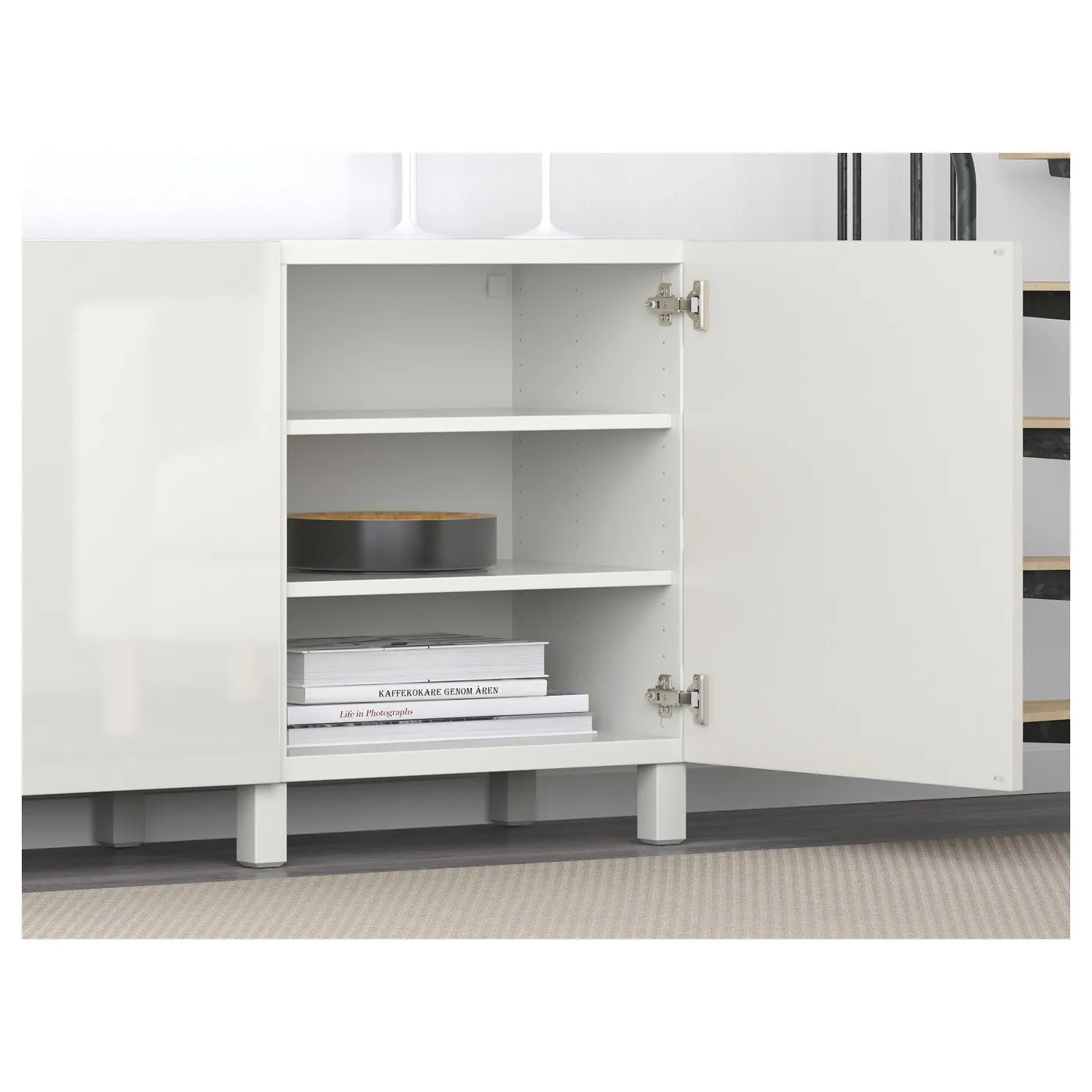 Эта комбинация состоит из нескольких отдельных секций. Используйте верхнюю панель BESTÅ, продающуюся отдельно, чтобы скрыть стык между рамами и создать единое впечатление.