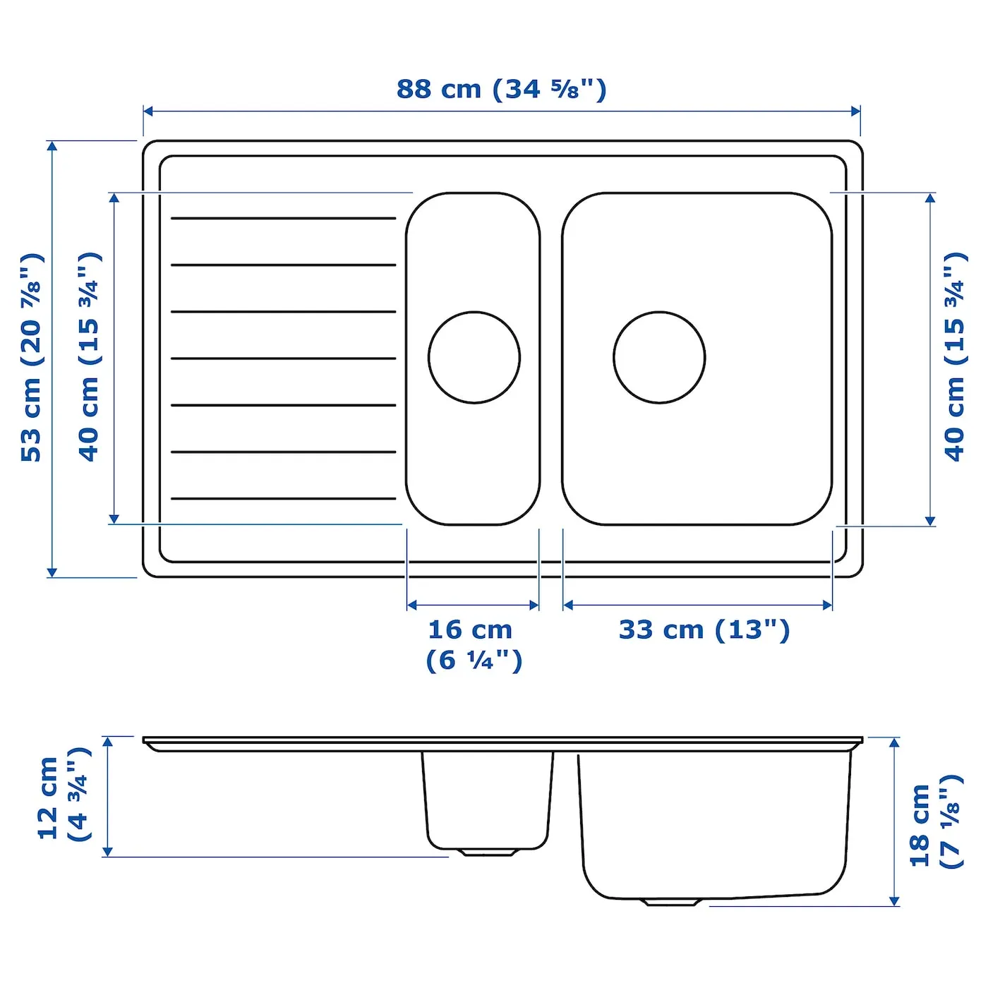 Сифон и фильтр LILLVIKEN входят в стоимость, но упакованы отдельно.
