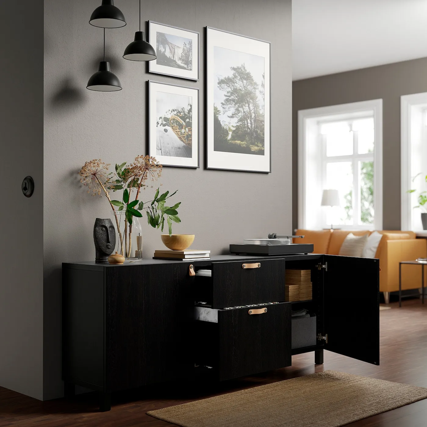 Эта комбинация состоит из нескольких отдельных модулей. Используйте верхнюю панель BESTÅ, которую можно приобрести отдельно, чтобы скрыть стыки между рамами и создать цельный вид.