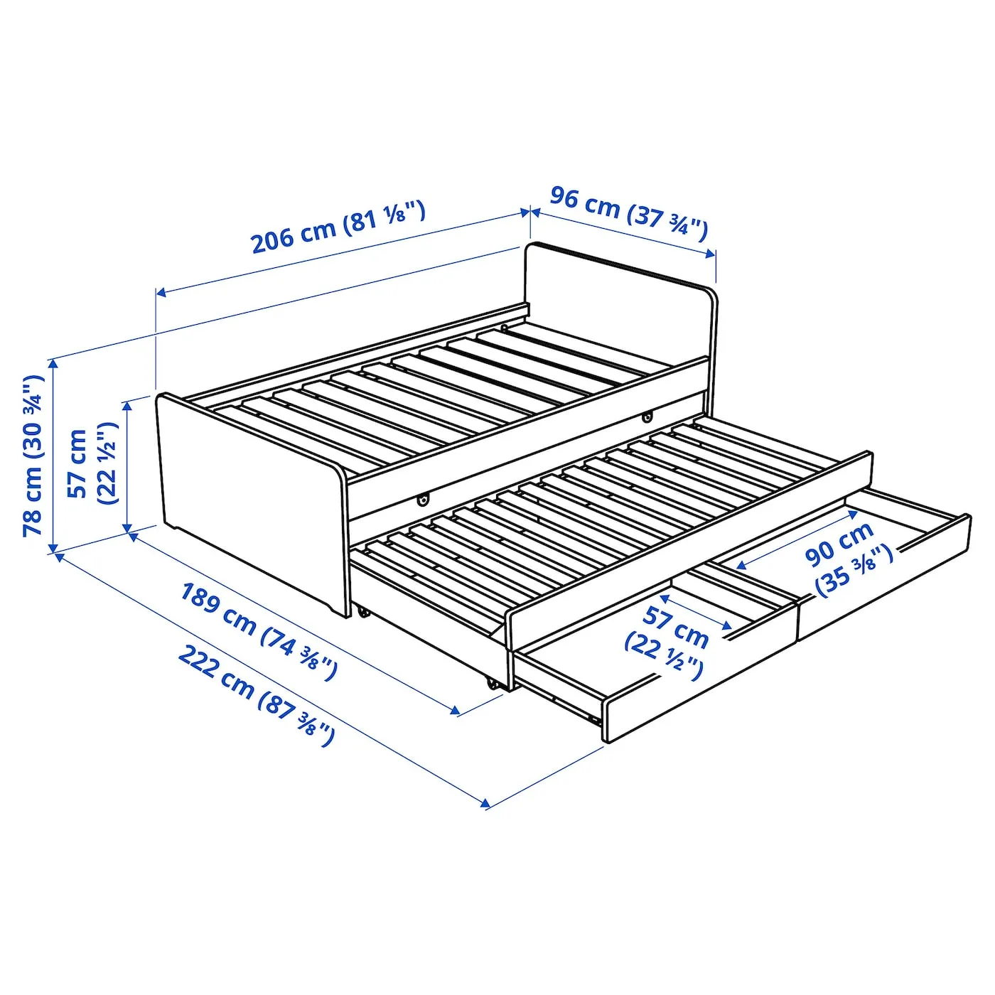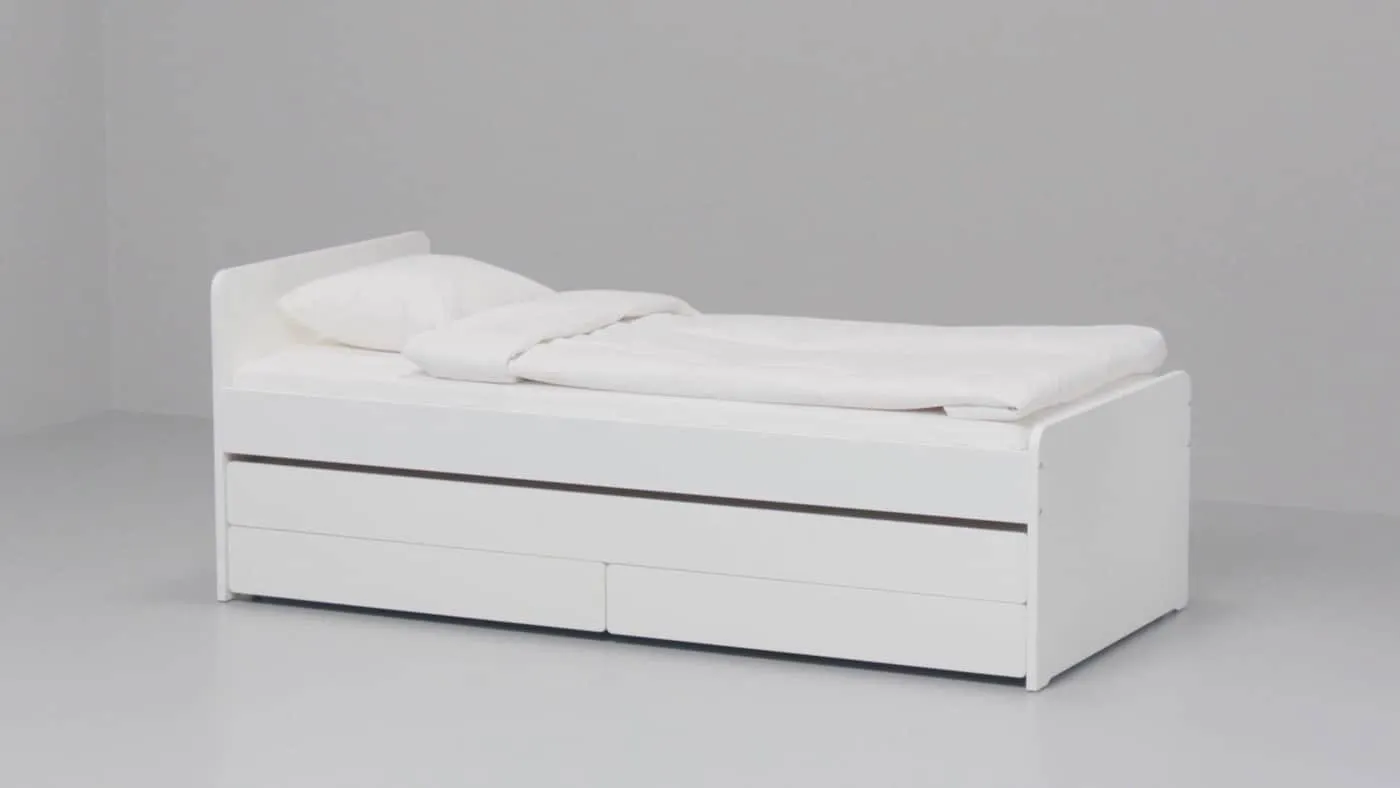 Дополнительное спальное место удобно выдвигается, когда друг остается на ночь, а в двух ящиках достаточно места для постельного белья и игрушек.