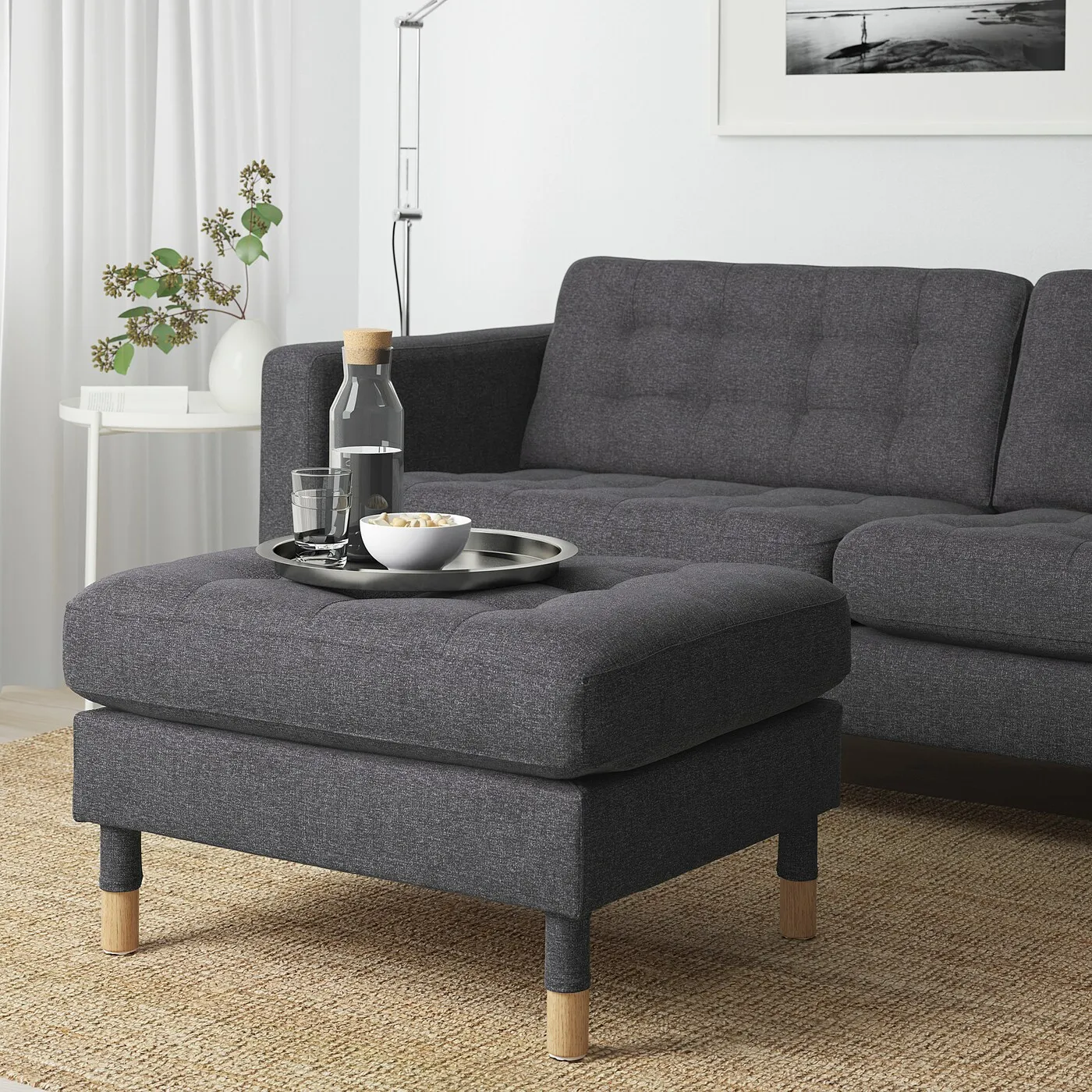 Пуф LANDSKRONA удобен для того, чтобы отдохнуть, положив на него ноги, или использовать как дополнительное место для сидения. Ножки из дуба и ровно зафиксированное стёганое покрытие создают элегантный и стильный вид. Присаживайтесь и расслабьтесь.